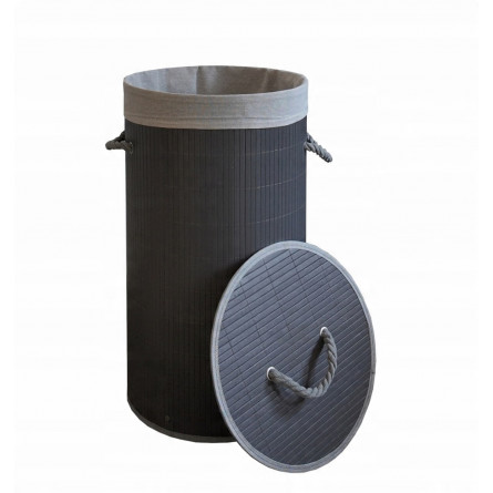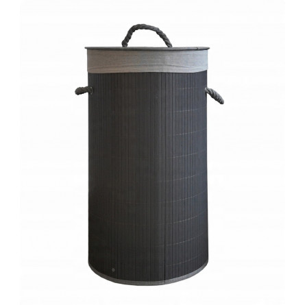 Okrúhly bambusový kôš na bielizeň v sivej farbe, 60l