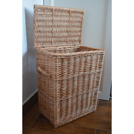 Pevný a funkčný obdĺžnikový kúpeľňový košík vyrobený z prírodného prútia.