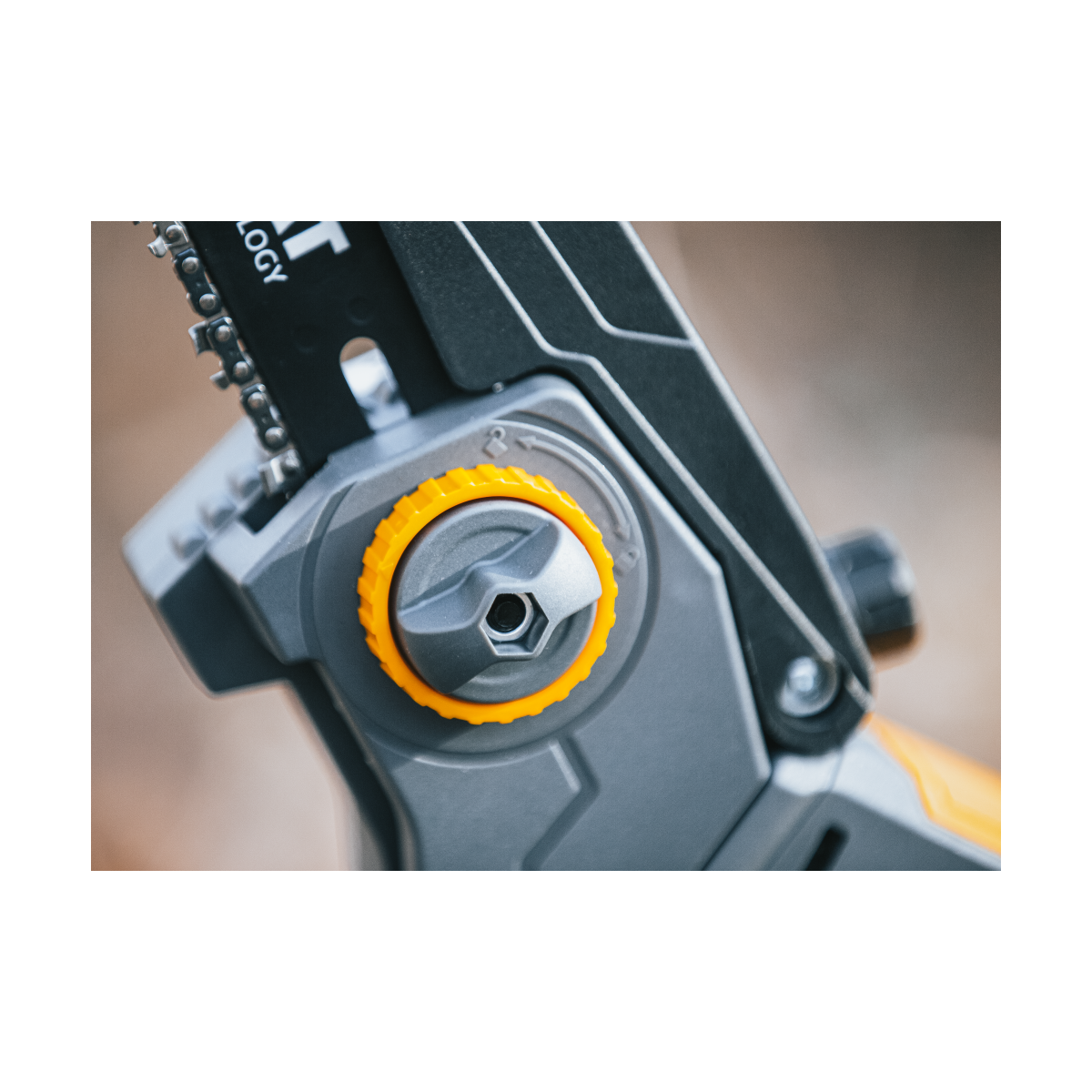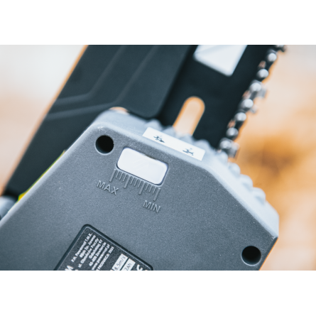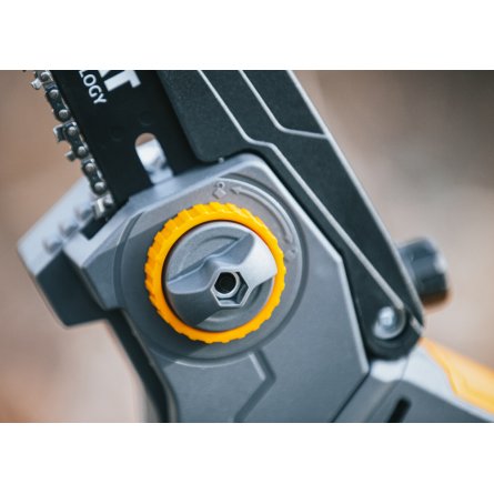Pohodlné koliesko s poistnou maticou umožňuje rýchle a presné nastavenie napnutia reťaze.