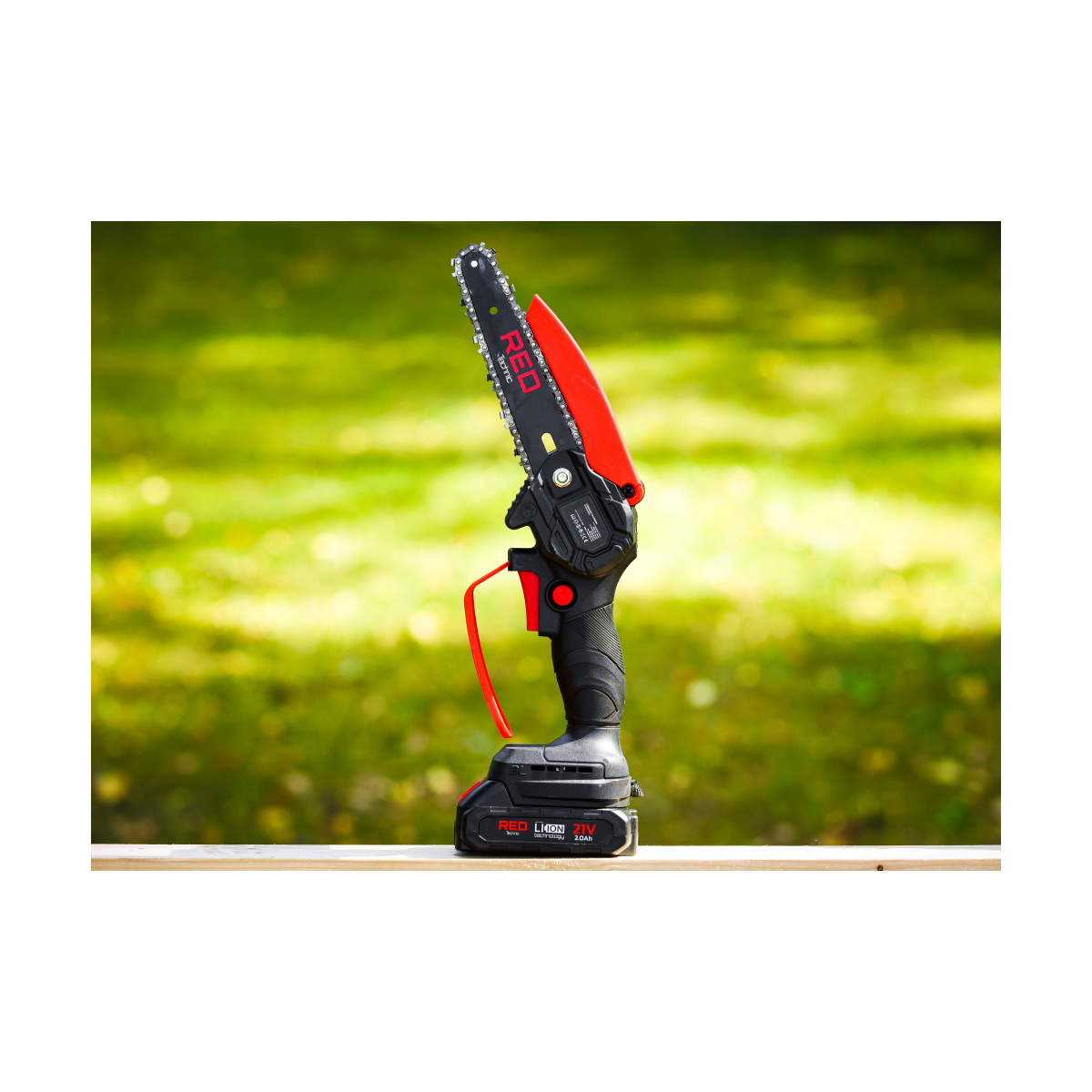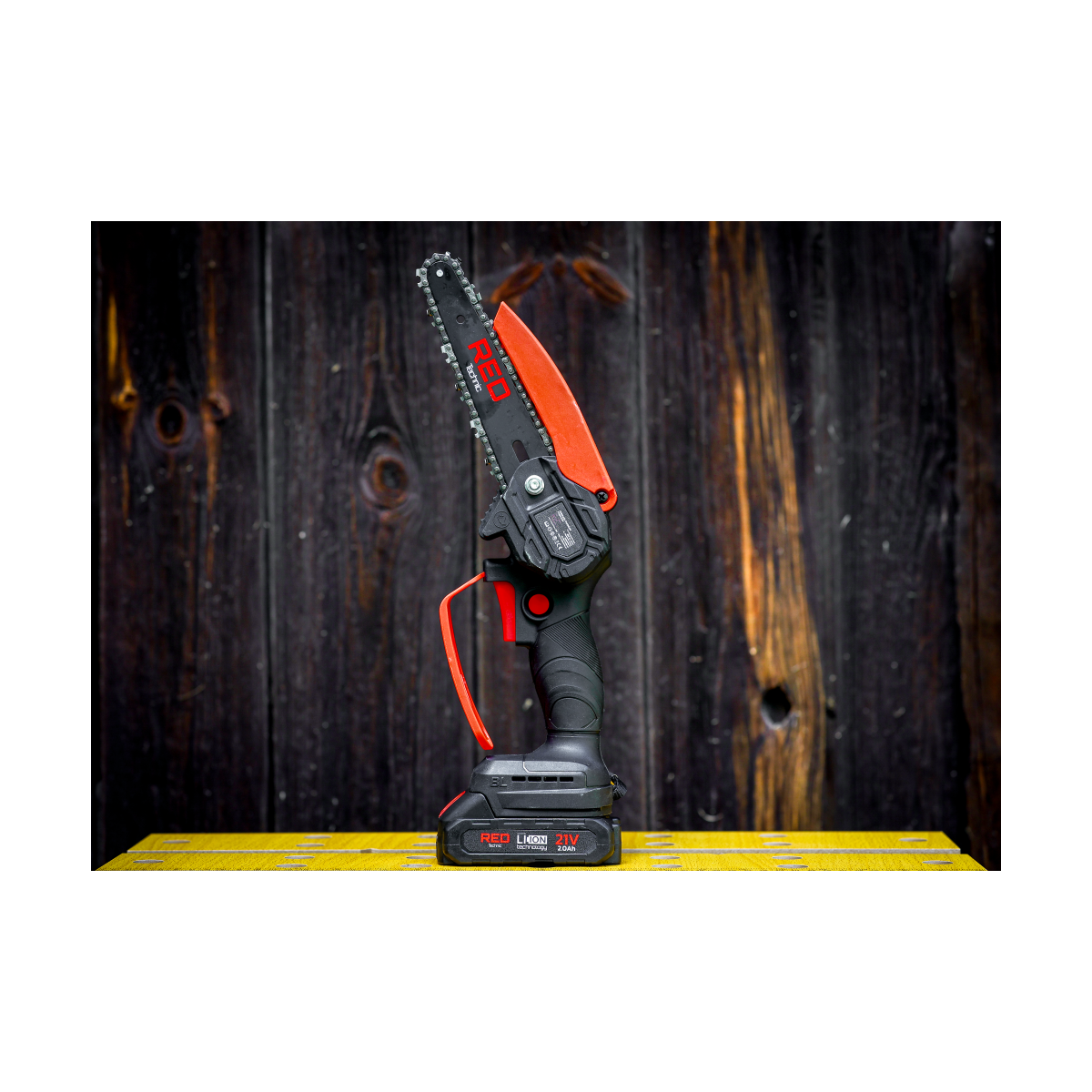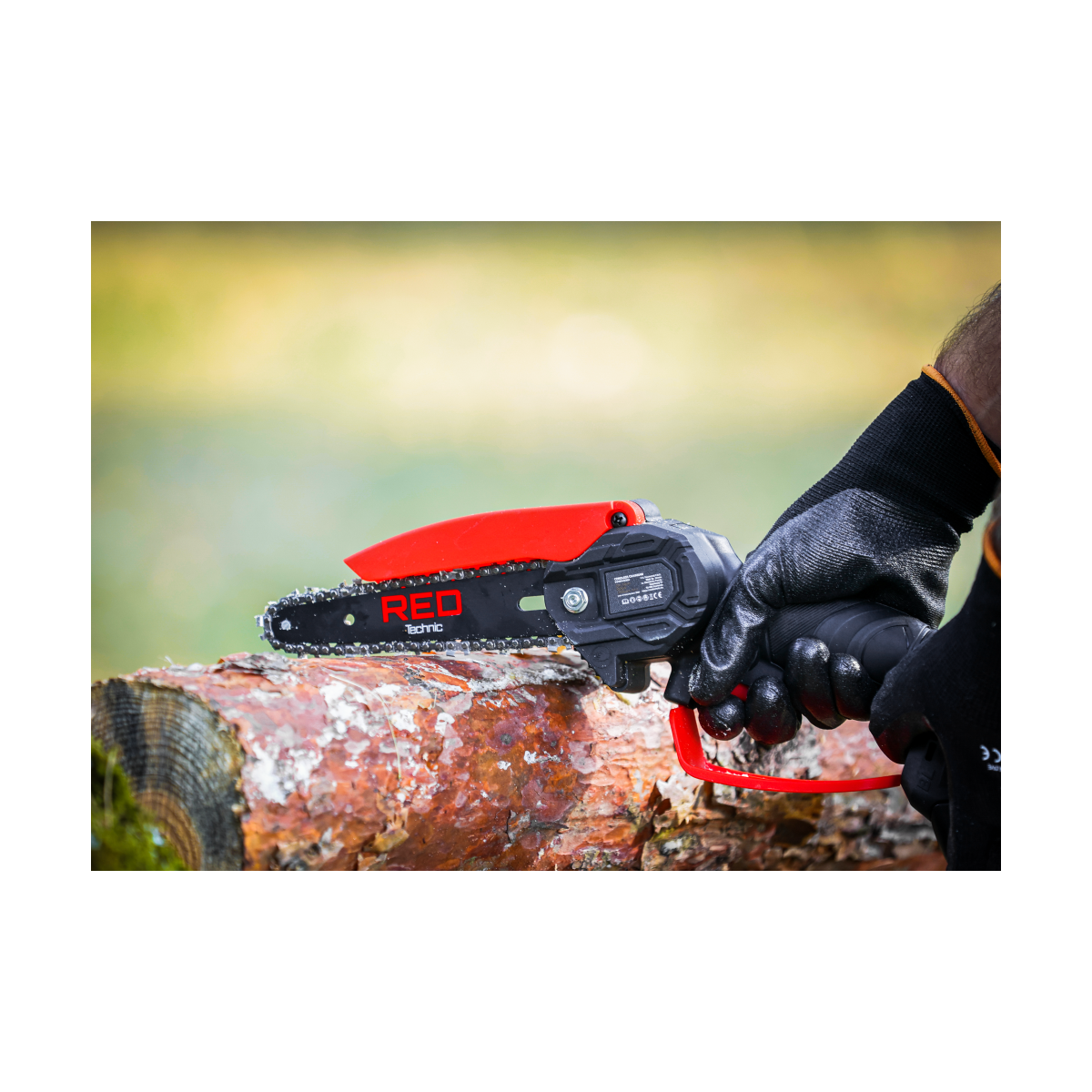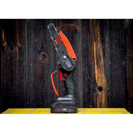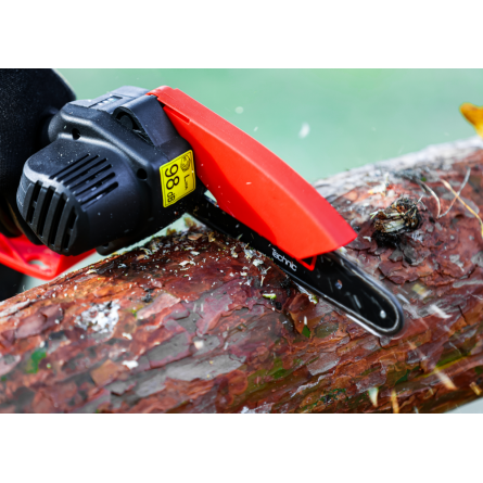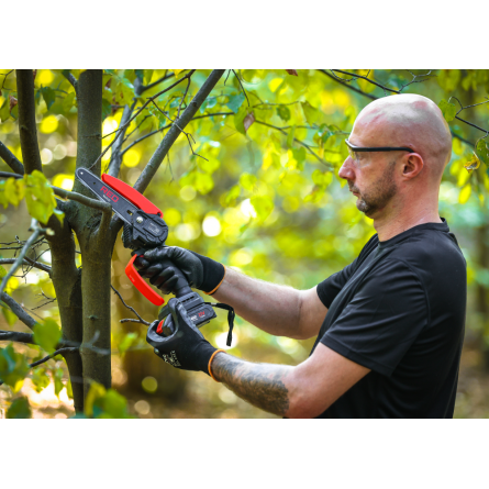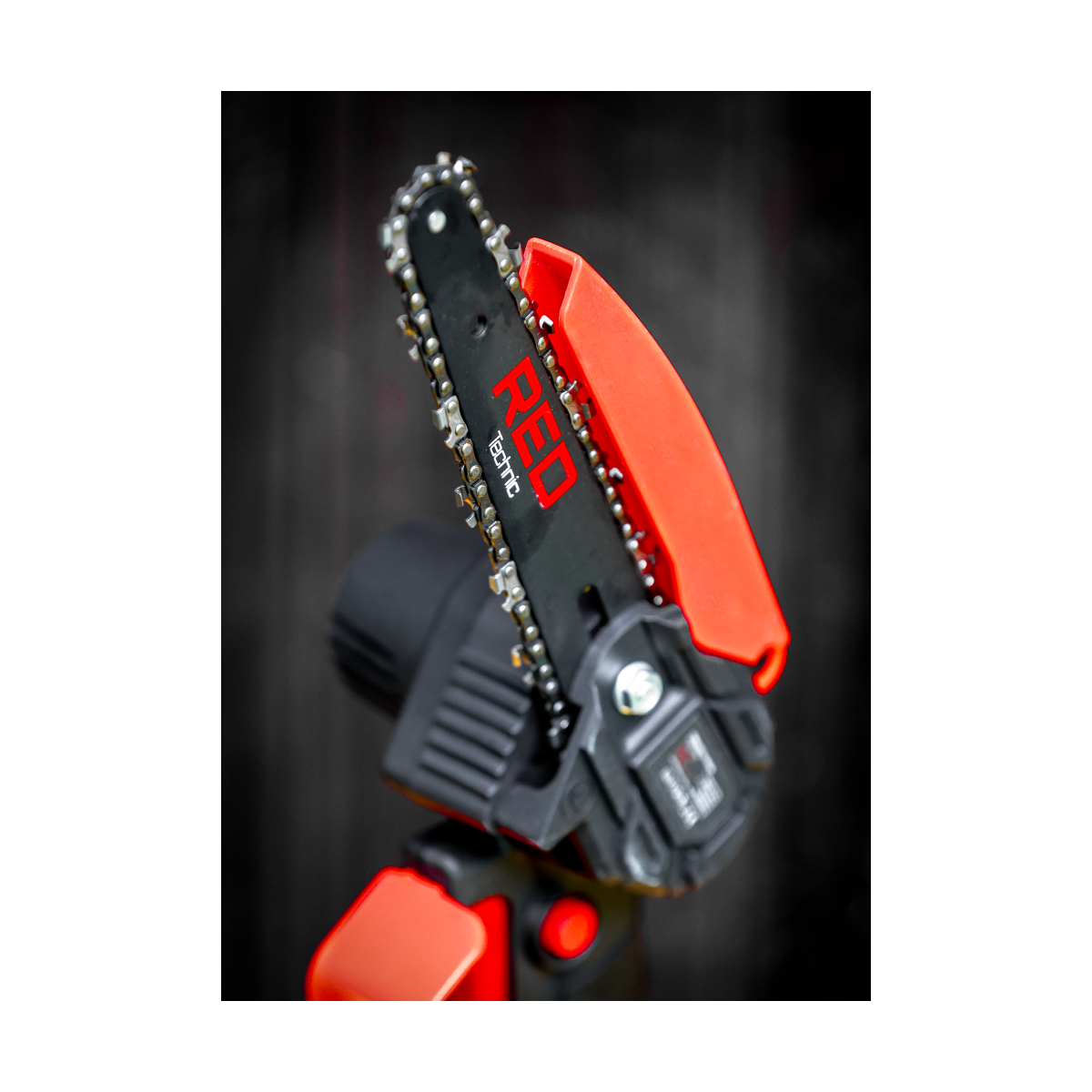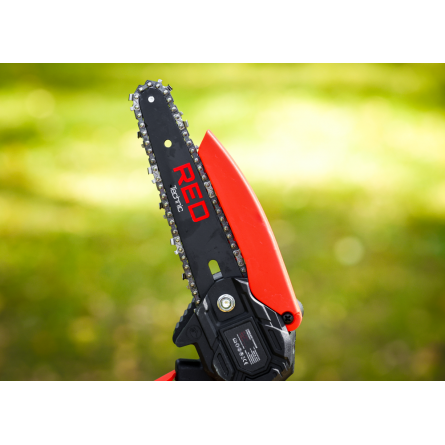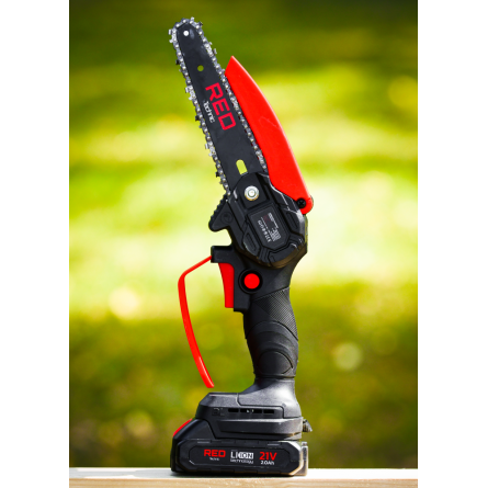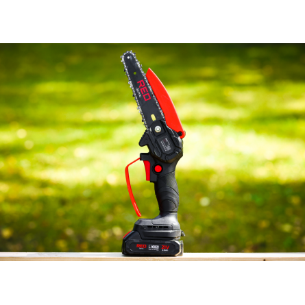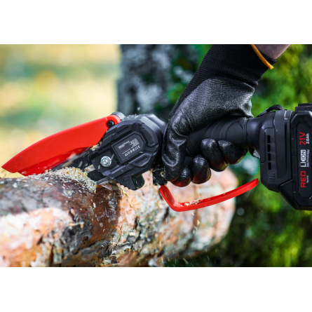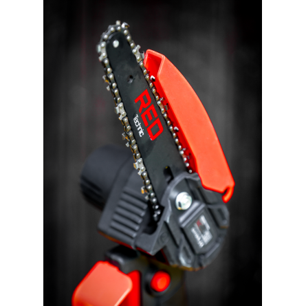 Ľahká akumulátorová píla Red Technic RTMPA0064 s 2× 20V batériou, 4 reťazami a lištami 4" + 6". Ideálna na konáre, malé stromčeky a palivové drevo.
