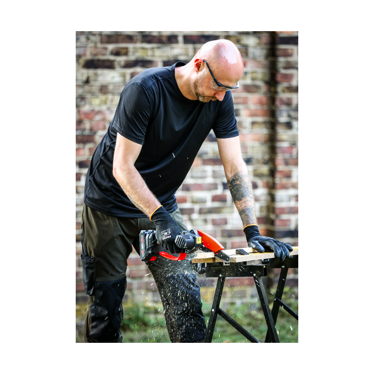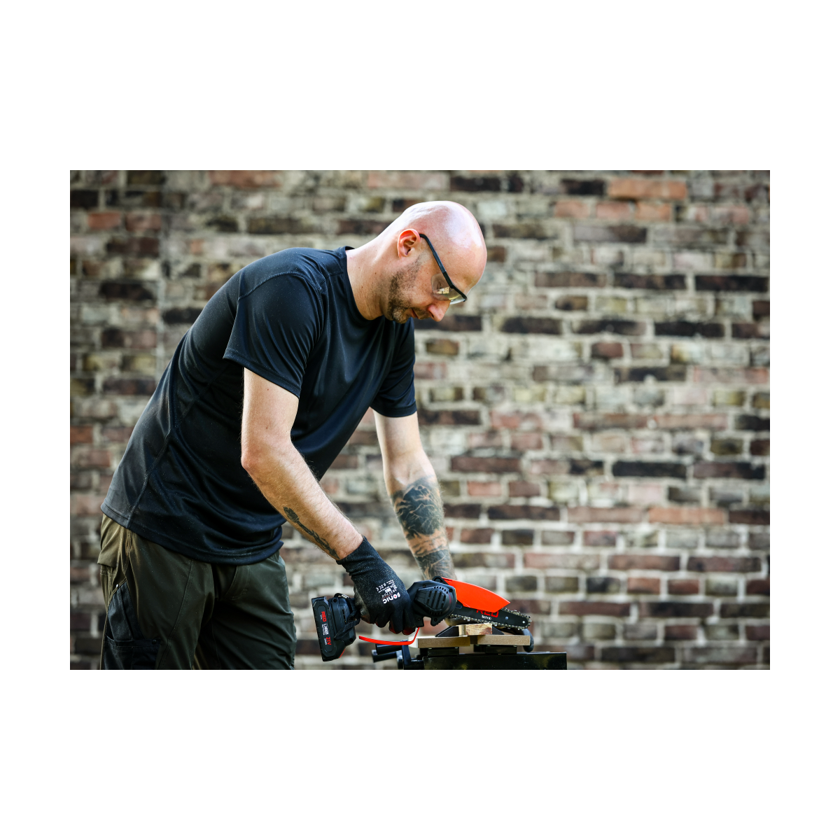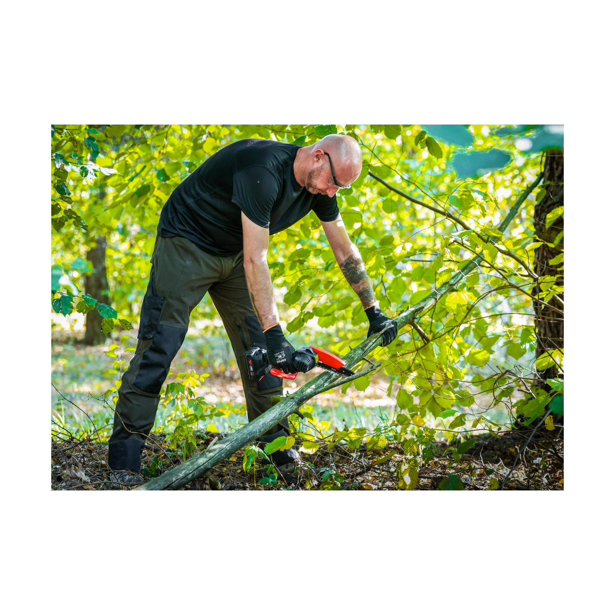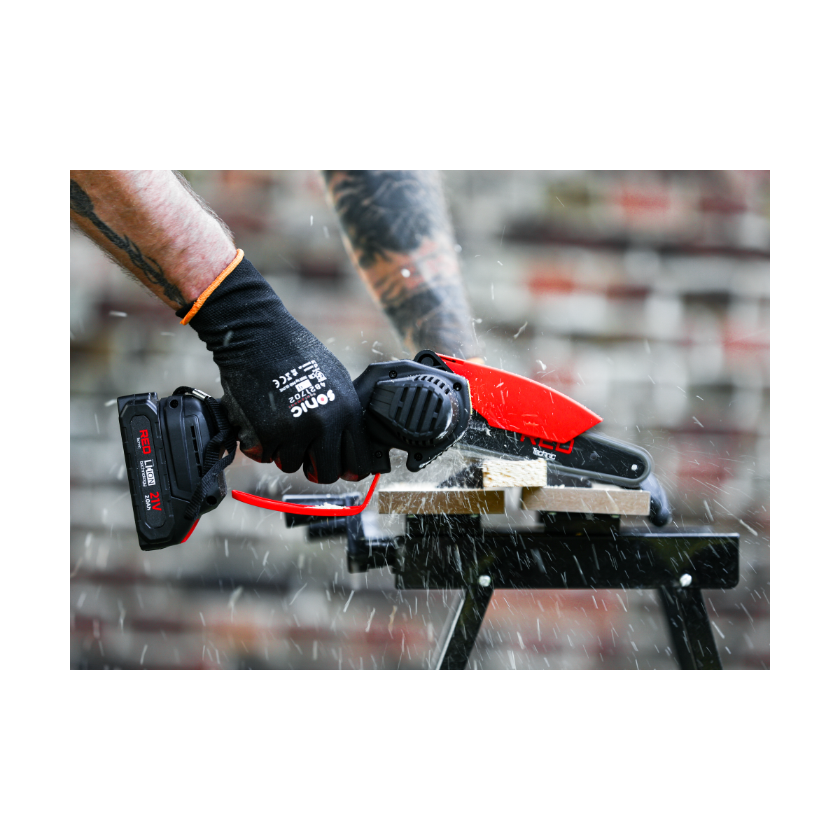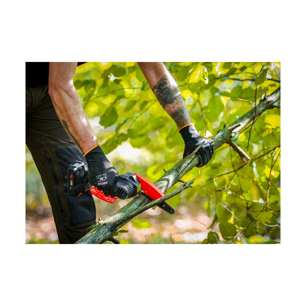 Ľahká akumulátorová píla Red Technic RTMPA0064 s 2× 20V batériou, 4 reťazami a lištami 4" + 6". Ideálna na konáre, malé stromčeky a palivové drevo.