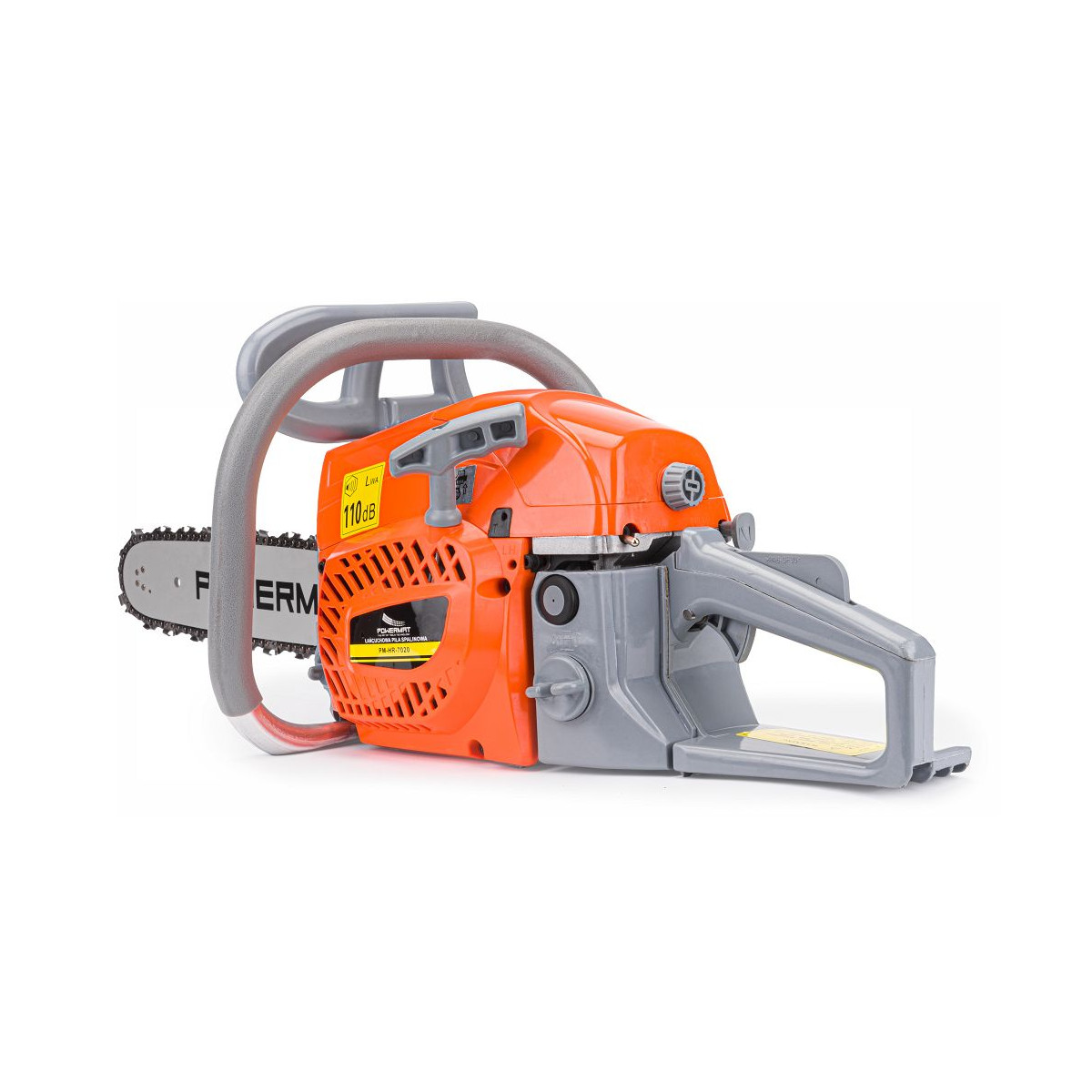 Profesionálna benzínová píla Powermat PM-HR-7020 s výkonom 4,9 KM, lištou 16" a japonským karburátorom Walbro. Ideálna na náročné práce v lese aj záhrade.