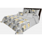Sivý prešívaný prehoz s potlačou palmových a banánových listov 240x260