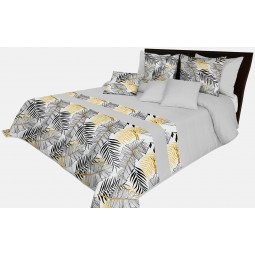 Svetlo sivý prešívaný prehoz s potlačou palmových a banánových listov 220x240