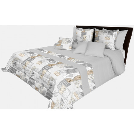 Sivý prešívaný prehoz s potlačou srdca 240x260