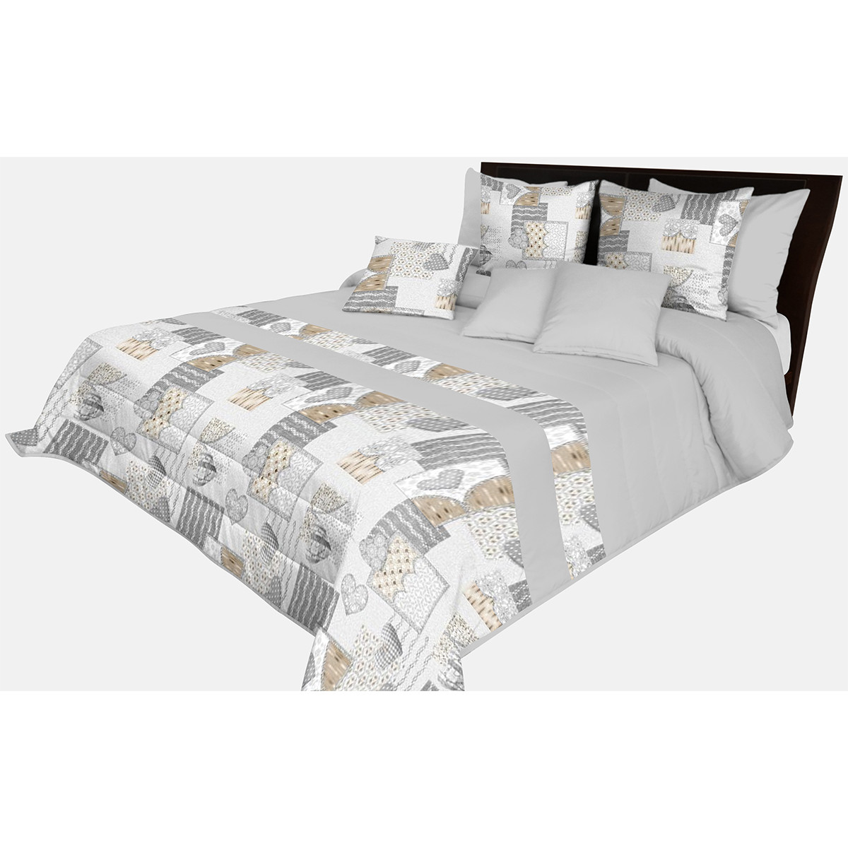Prešívaný sivý prehoz s potlačou srdca 170x210