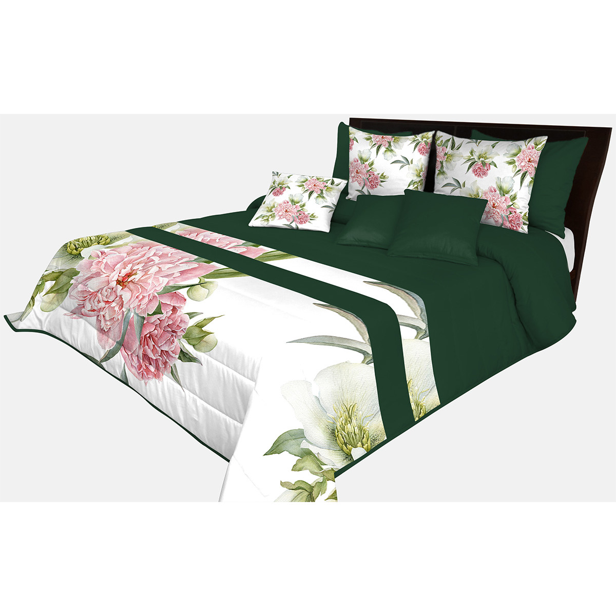 Prehoz na posteľ s kvetmi na zelenom podklade 220x240