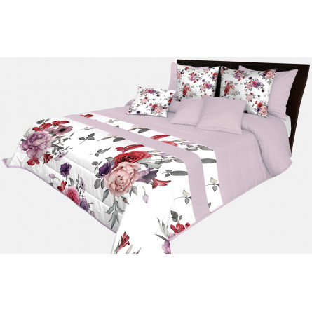 Ružový prešívaný prehoz s kvetmi, 240x260
