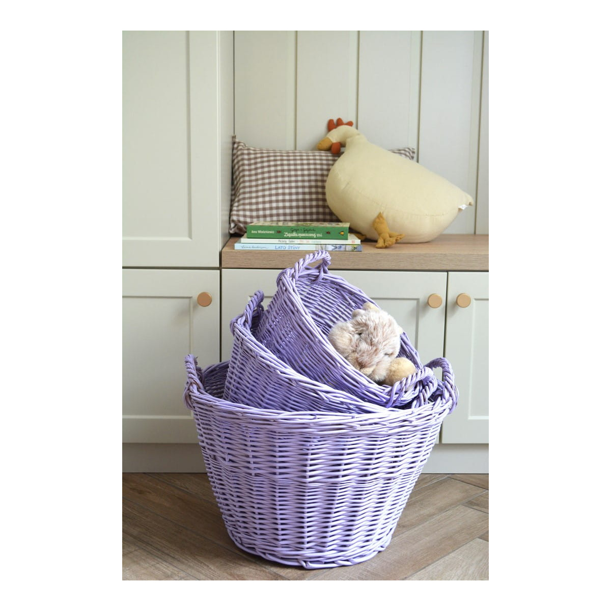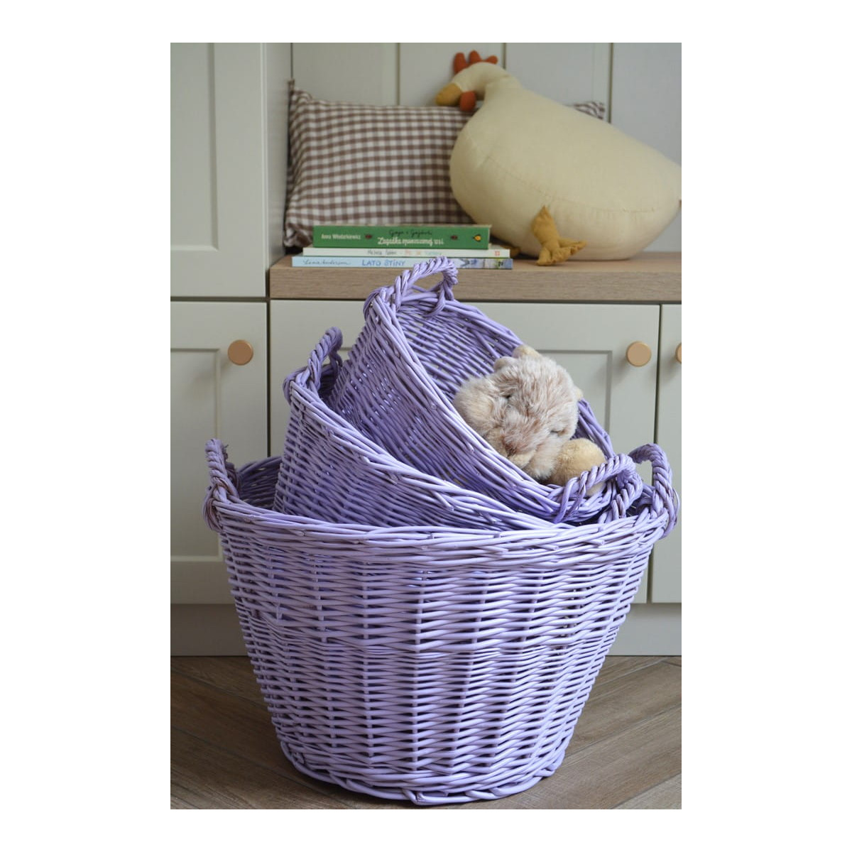 Prútený kôš vyrobený z prírodnej vŕby v levanduľovej farbe. Jeho funkčnosť a široké využitie z neho robia nevyhnutnú súčasť každého domova. Vysokokvalitná vŕba spolu s precíznym spracovaním zaručujú, že naše výrobky vám budú slúžiť dlhé roky. Koše v levanduľovej farbe sú maľované ekologickými, certifikovanými farbami metódou nástreku.