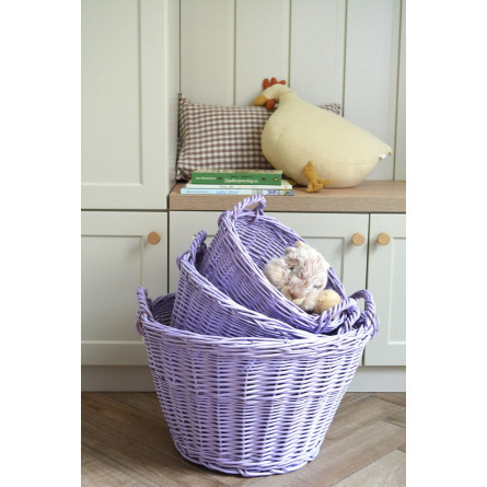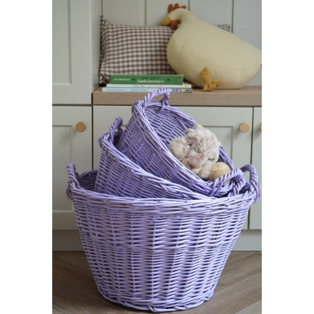 Prútený kôš vyrobený z prírodnej vŕby v levanduľovej farbe. Jeho funkčnosť a široké využitie z neho robia nevyhnutnú súčasť každého domova. Vysokokvalitná vŕba spolu s precíznym spracovaním zaručujú, že naše výrobky vám budú slúžiť dlhé roky. Koše v levanduľovej farbe sú maľované ekologickými, certifikovanými farbami metódou nástreku.