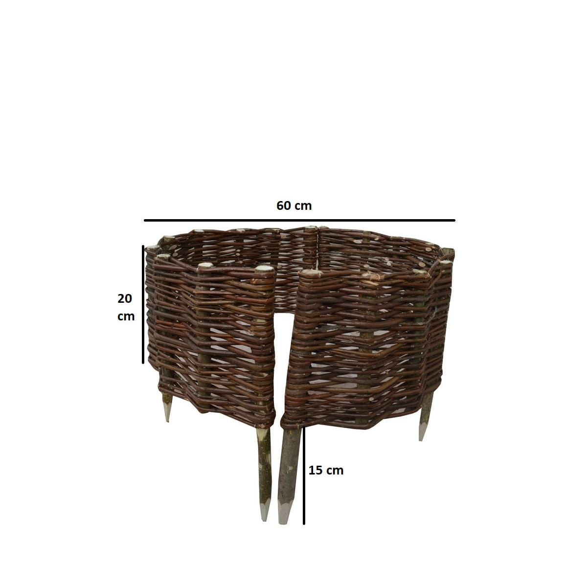 Pôsobivá zaoblená prútená palisáda. Dodá vašej záhrade originálny a zaujímavý akcent. Ideálne ako obal na kvety, kríky alebo ako samostatná dekorácia. Ručne tkané z kvalitného prírodného prútia. Impregnovaná palisáda poslúži v záhrade dlho.