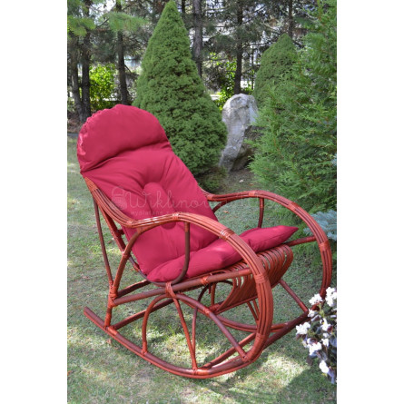 Veľmi pevné a odolné hojdacie kreslo, ručne vyrobené z prírodného prútia vo višňovej farbe.