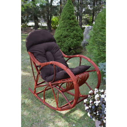 Veľmi pevné a odolné hojdacie kreslo, ručne vyrobené z prírodného prútia vo višňovej farbe.