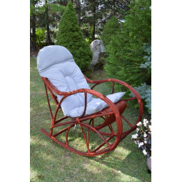 Veľmi pevné a odolné hojdacie kreslo, ručne vyrobené z prírodného prútia vo višňovej farbe.