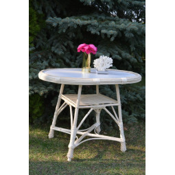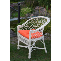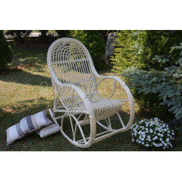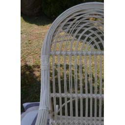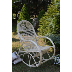Veľmi pevné a odolné hojdacie kreslo, ručne vyrobené z prírodného prútia s bieloo úpravou.