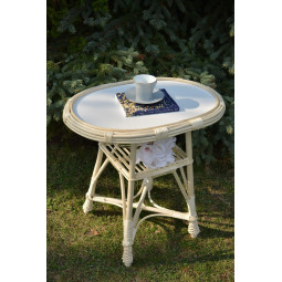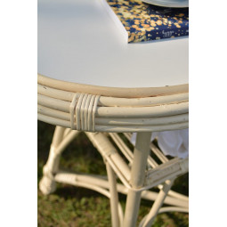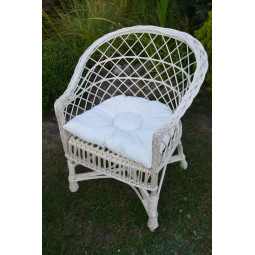 Veľmi pevné a odolné hojdacie kreslo, ručne vyrobené z prírodného prútia s bieloo úpravou.