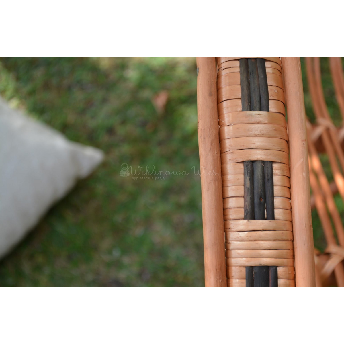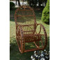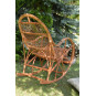 Veľmi pevné a odolné hojdacie kreslo, ručne vyrobené z prírodného prútia s prepletom v tmavej farbe.