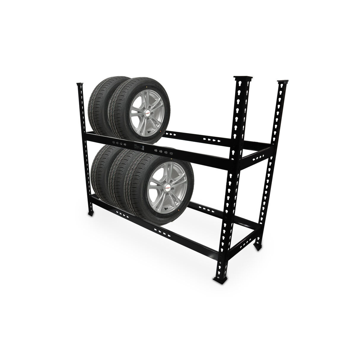 Tento regál je vyrobený z odolnej ocele a zaisťuje nielen stabilitu, ale aj dlhú životnosť. S rozmermi 120 x 47 x 102 cm ponúka dostatok miesta pre 8 kolies, ktoré sa dajú ľahko usporiadať, udržia poriadok a ľahký prístup.
