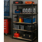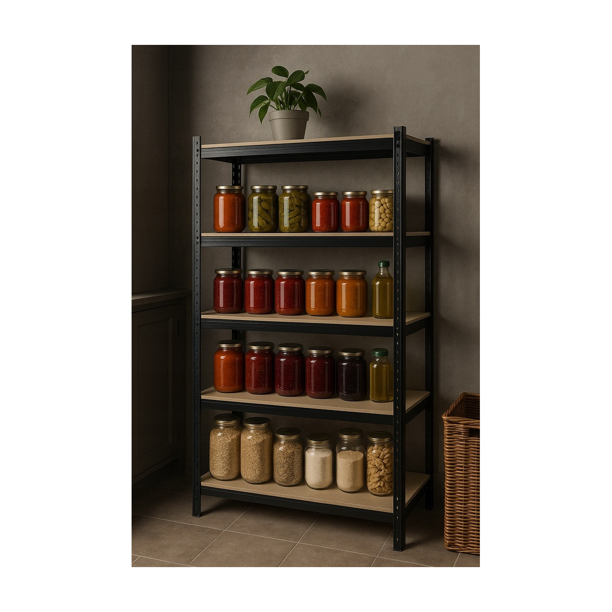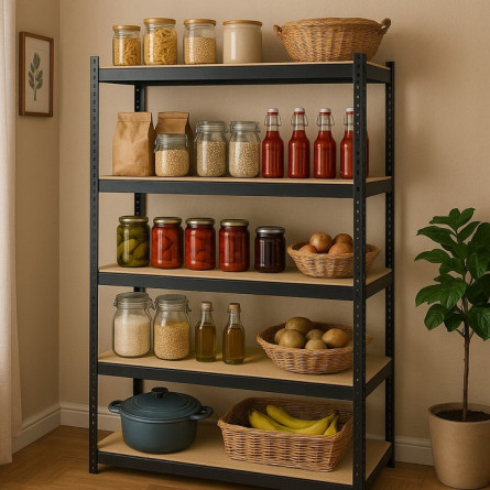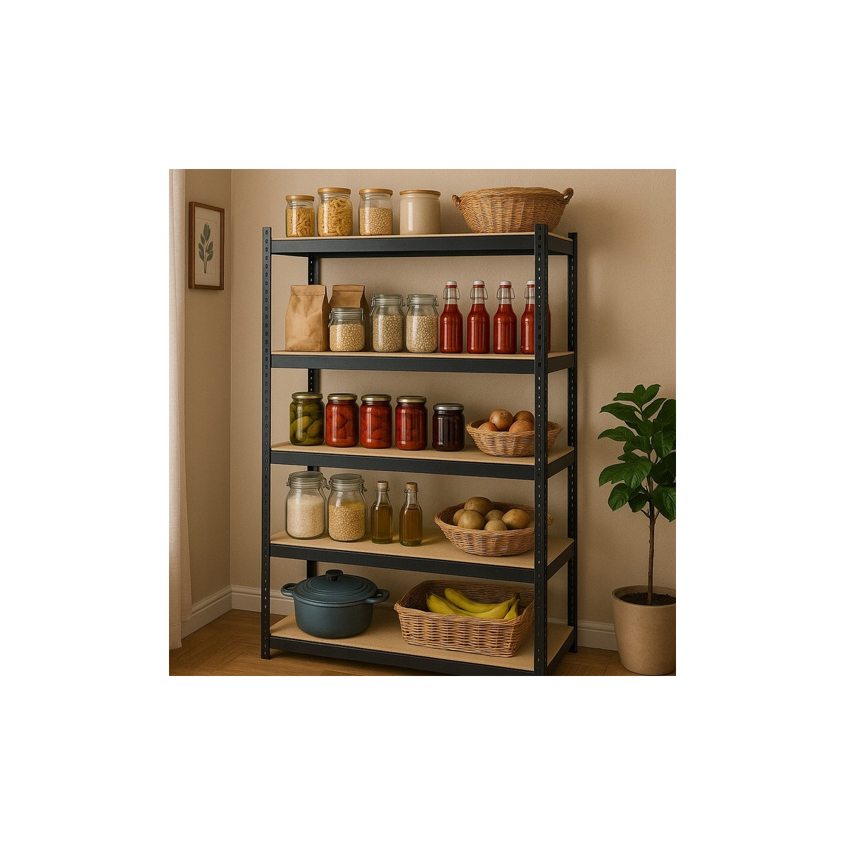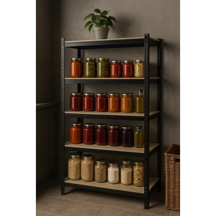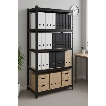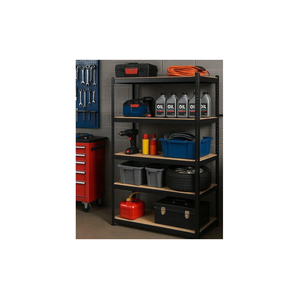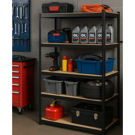 Extra pevný kovový regál s 5 MDF policami s hrúbkou 5 mm a celkovou nosnosťou až 1175 kg. Zosilnená pozinkovaná konštrukcia s profilmi 0,8 mm, nastaviteľná výška políc, bezskrutkový montážny systém a možnosť rozdelenia na dva samostatné moduly. Ideálny do garáže, skladu alebo dielne.
