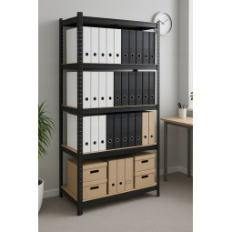 Kovový skladový regál RM02 je vysoko odolné riešenie určené na bezpečné a prehľadné skladovanie aj veľmi ťažkých predmetov. Vhodný je do kancelárie, špajze, skladu, pivnice, garáže alebo predajne. Vďaka zosilnenej konštrukcii a vysokej nosnosti patrí medzi najpevnejšie regály vo svojej kategórii. Konštrukcia je vyrobená z galvanizovaných kovových profilov s hrúbkou až 0,8 mm, ktoré zabezpečujú výnimočnú stabilitu a dlhú životnosť. Päť políc z MDF dosky s hrúbkou 5 mm je doplnených o stredové výstuhy, vďaka čomu každá polica unesie až 235 kg. Výšku políc je možné nastaviť podľa potreby v krokoch po 40 mm.