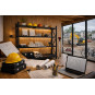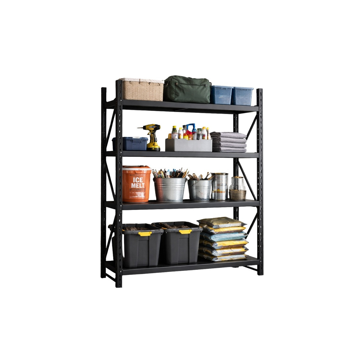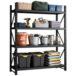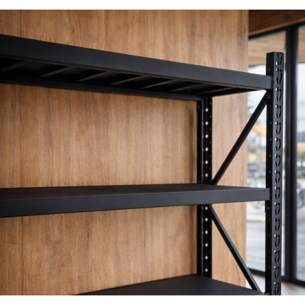 Profesionálny kovový regál so štyrmi zosilnenými kovovými policami a celkovou nosnosťou až 800 kg. Oceľová práškovo lakovaná konštrukcia, nastaviteľná výška políc, vysoká stabilita vďaka krížovým výstuhám. Ideálny do skladu, dielne, garáže alebo archívu.