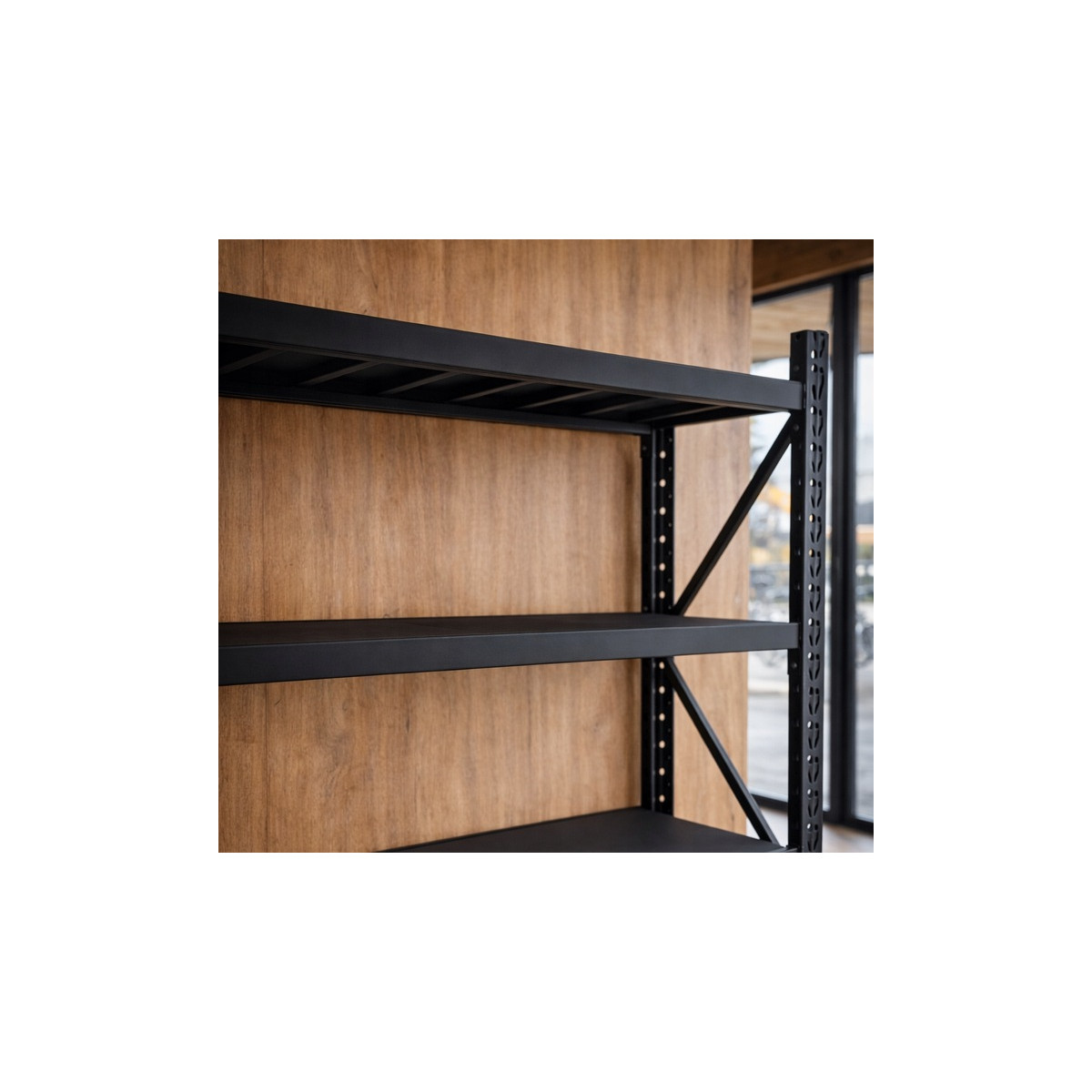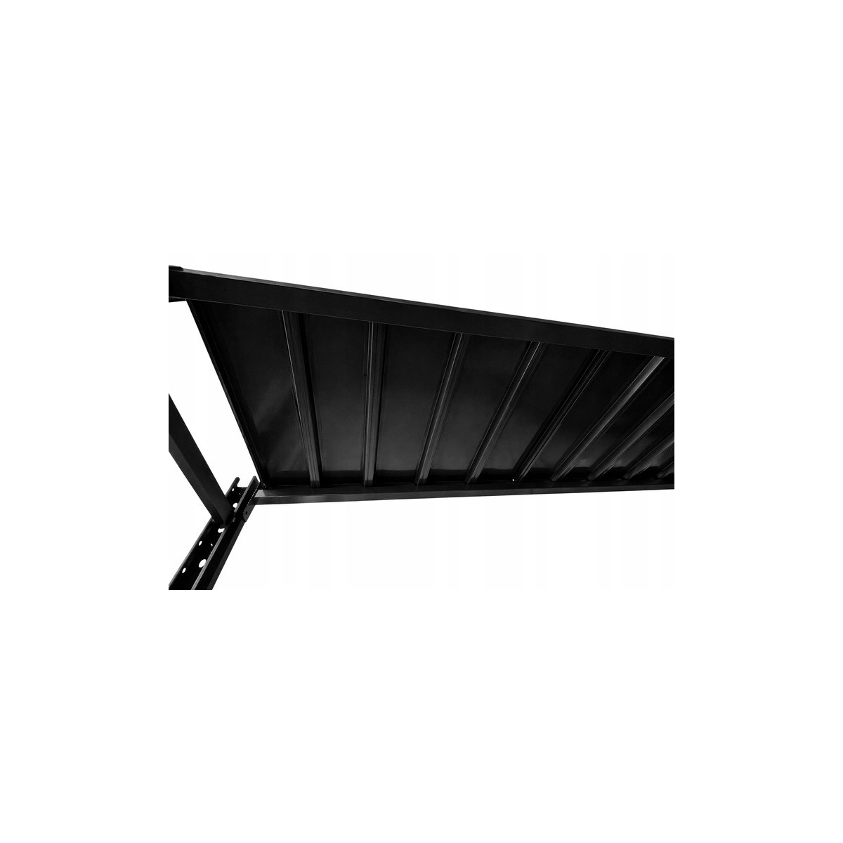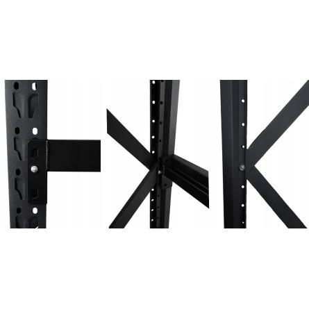 Štyri kovové police sú vyrobené z jednoliateho oceľového plechu so spodnými lisovanými výstuhami, ktoré zabraňujú prehýbaniu aj pri vysokom zaťažení. Každá polica má nosnosť až 200 kg, pričom celková nosnosť regálu dosahuje 800 kg. Výšku políc je možné nastaviť podľa potreby v krokoch približne po 7,5 cm.