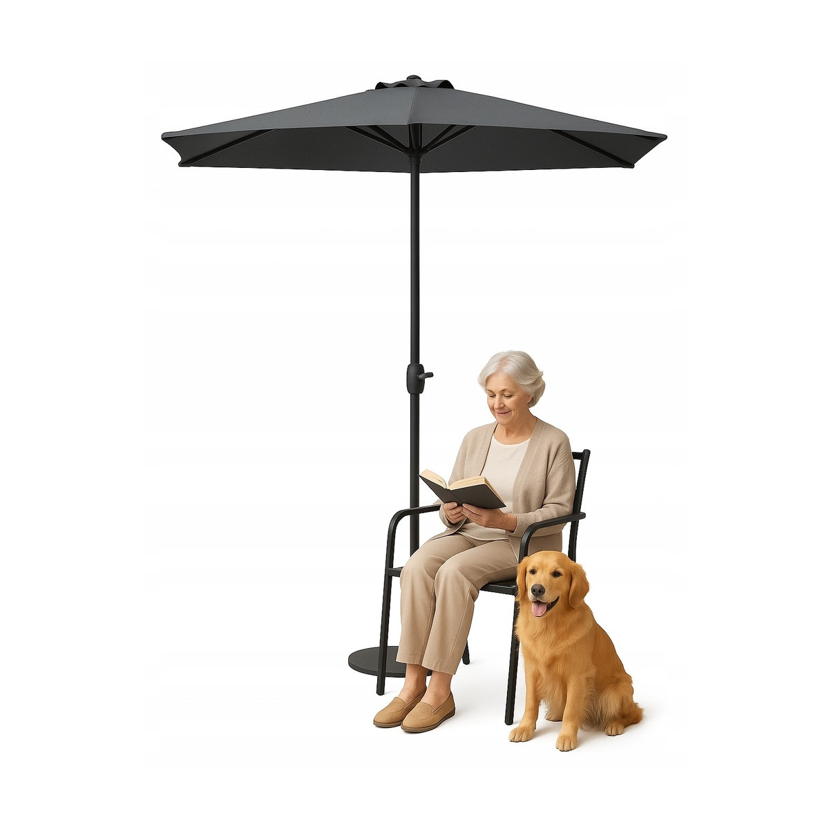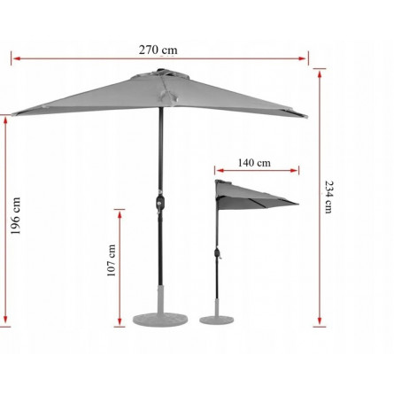 Ideálne riešenie pre tých, ktorí hľadajú funkčný a štýlový tieň na terasu, balkón alebo k stene budovy. Polovičný slnečník je praktickou alternatívou k tradičným slnečníkom – zaberá málo miesta a zároveň účinne chráni pred slnkom.