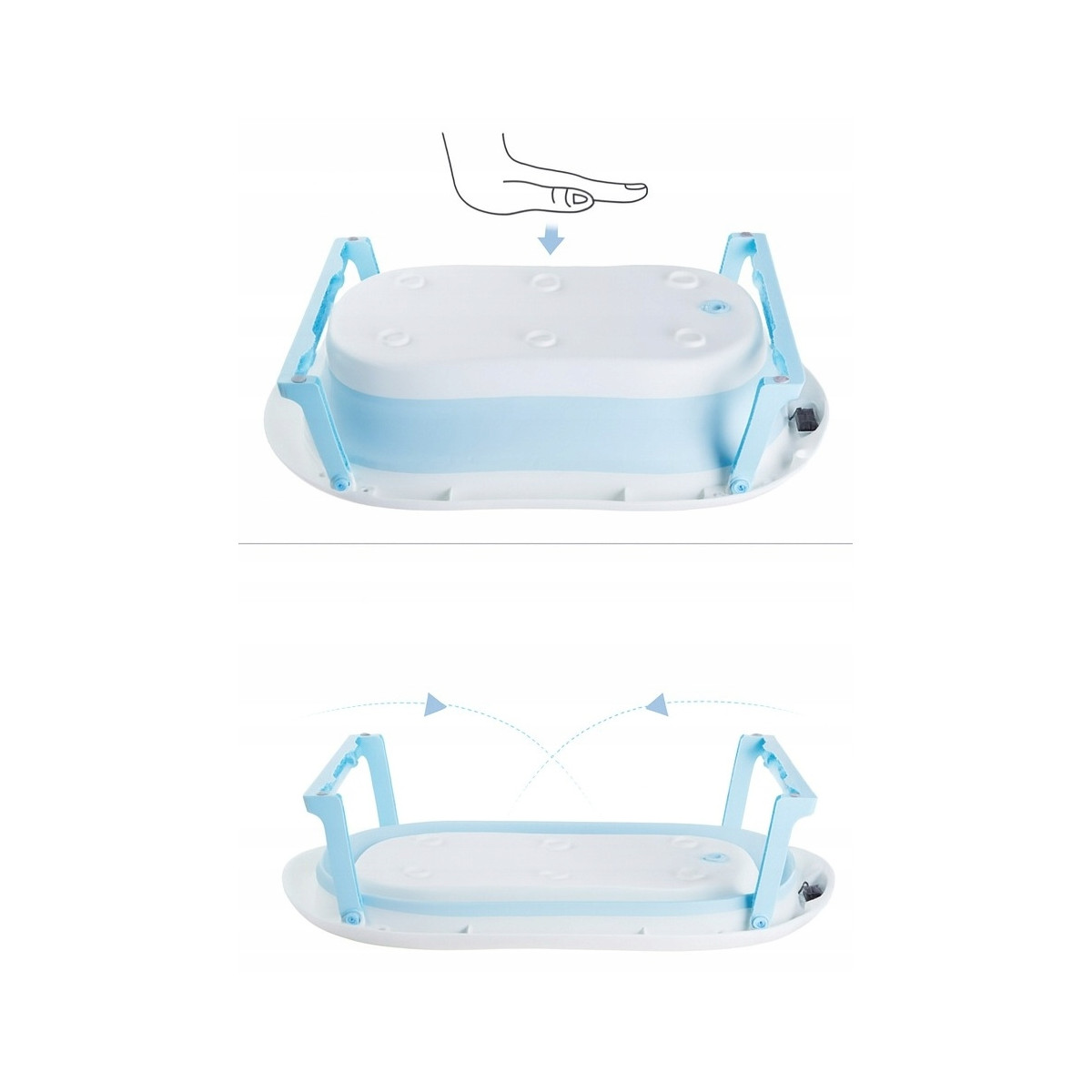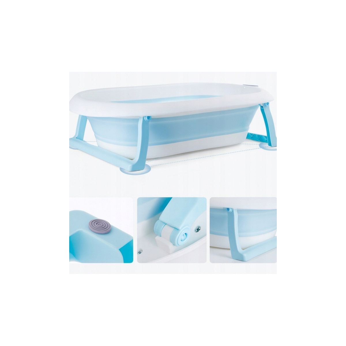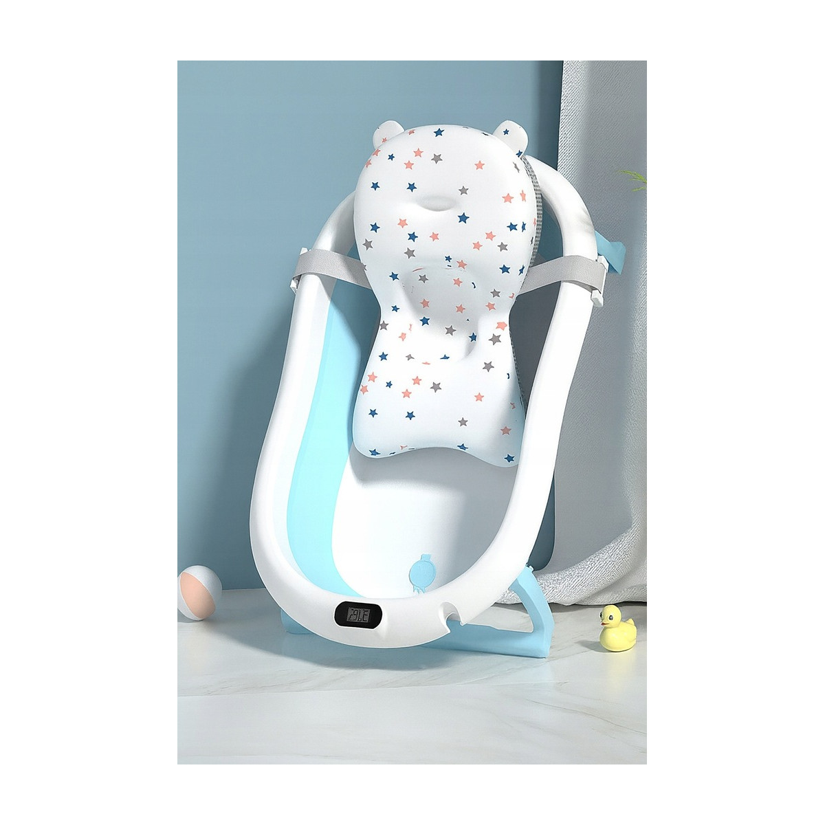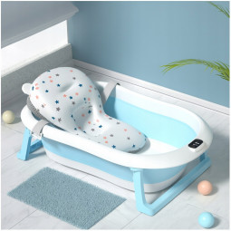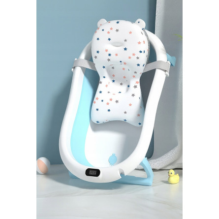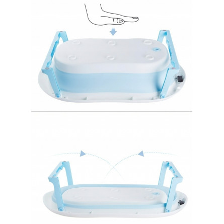 Skladacia detská vaňa ARIEL s integrovaným termometrom a mäkkou poduškou je ideálna voľba pre bezpečné a pohodlné kúpanie novorodenca. Vďaka skladacej konštrukcii zaberá iba cca 10 cm výšky, čo uľahčuje skladovanie v malej kúpeľni. Dodatočné funkcie ako protisklzové nožičky, odtokový ventil s korkom, držiak na sprchu a odnímateľná poduška z nej robia multifunkčný a praktický doplnok pre rodičov.