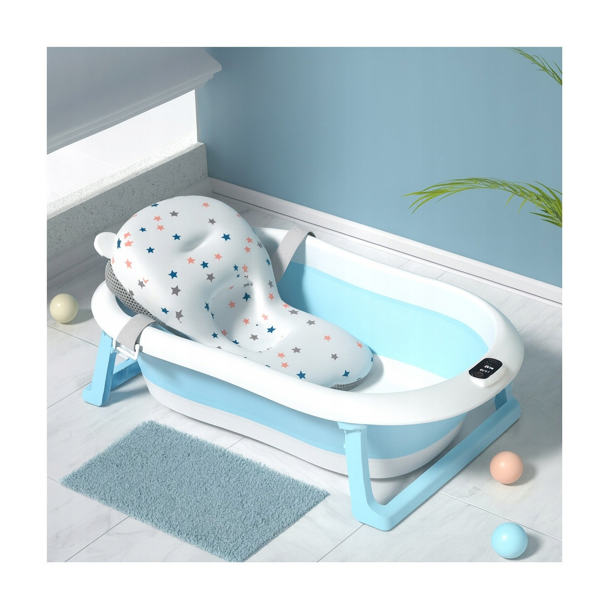 Vanička ARIEL na kúpanie bábätka s podložkou a teplomerom, modrá