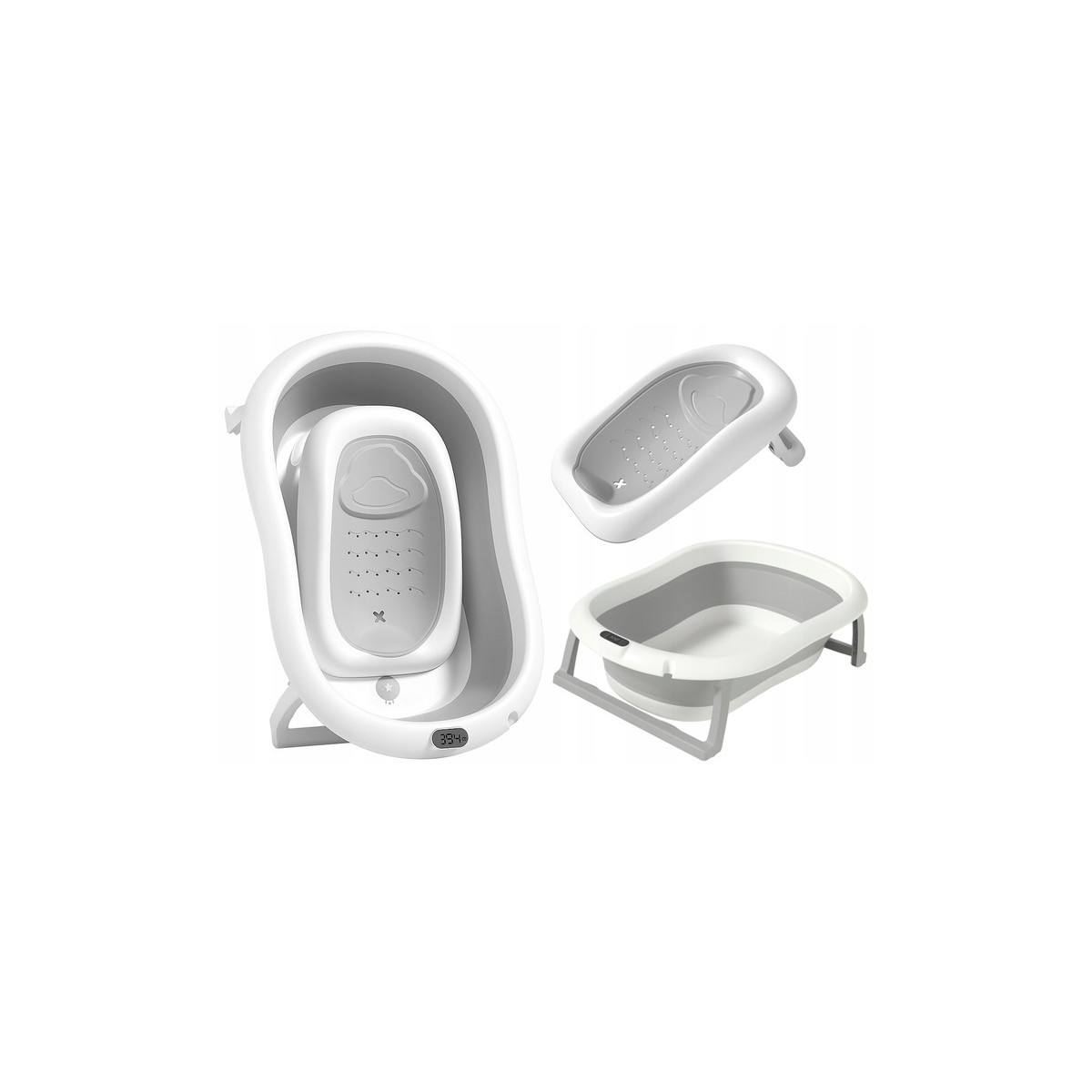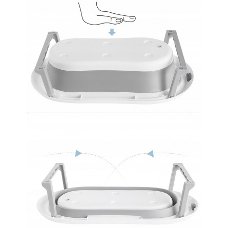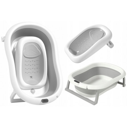 Skladacia detská vaňa ARIEL s integrovaným termometrom a mäkkou poduškou je ideálna voľba pre bezpečné a pohodlné kúpanie novorodenca. Vďaka skladacej konštrukcii zaberá iba cca 10 cm výšky, čo uľahčuje skladovanie v malej kúpeľni. Dodatočné funkcie ako protisklzové nožičky, odtokový ventil s korkom, držiak na sprchu a odnímateľná poduška z nej robia multifunkčný a praktický doplnok pre rodičov.