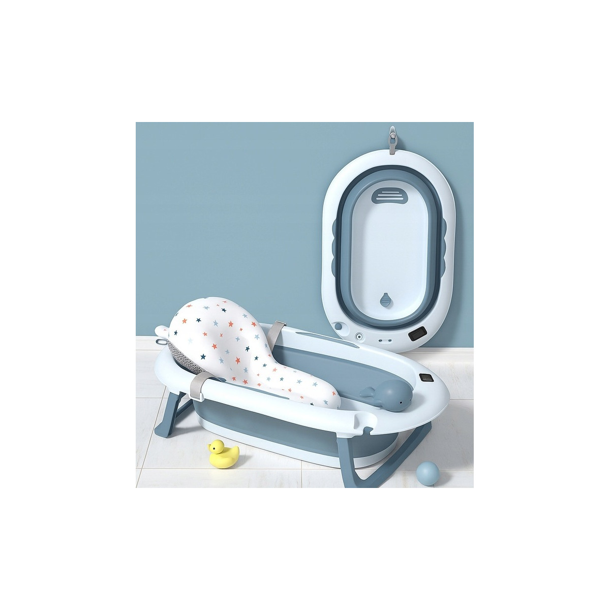 Prémiová skladacia vaňa s vankúšom, teplomerom a hračkou. Dokonalé od prvých dní bábätka! Naša vaňa kombinuje pohodlie, bezpečnosť a funkčnosť, vďaka čomu je kúpanie skutočným potešením pre bábätko aj rodiča. Vďaka kompaktnému dizajnu, skladaciemu dizajnu a silikónovému závesu sa vaňa ľahko zmestí do každej kúpeľne a dá sa pohodlne zavesiť na stenu.