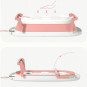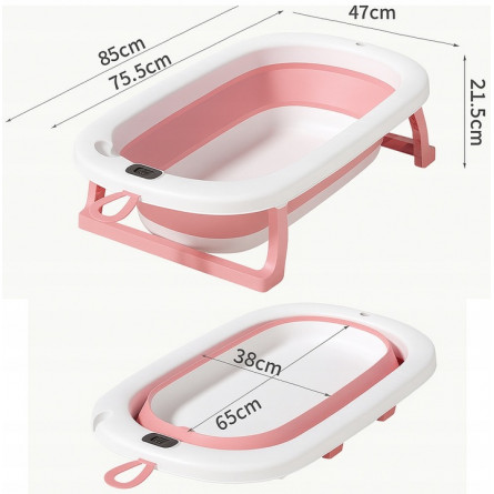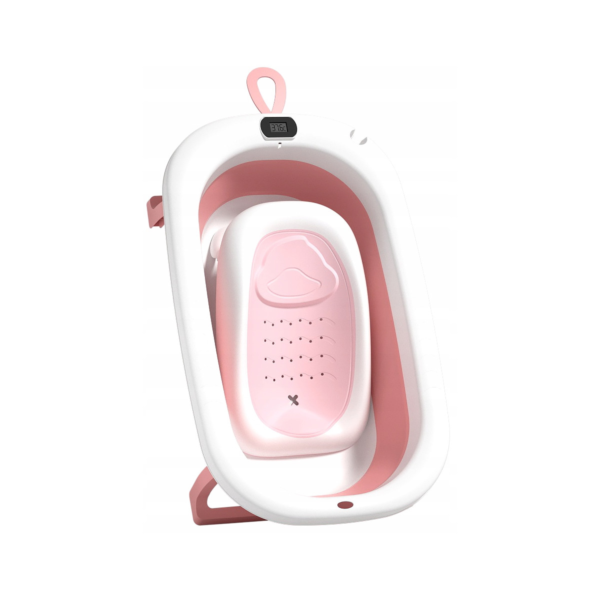 Skladacia detská vaňa ARIEL s integrovaným termometrom a mäkkou poduškou je ideálna voľba pre bezpečné a pohodlné kúpanie novorodenca. Vďaka skladacej konštrukcii zaberá iba cca 10 cm výšky, čo uľahčuje skladovanie v malej kúpeľni. Dodatočné funkcie ako protisklzové nožičky, odtokový ventil s korkom, držiak na sprchu a odnímateľná poduška z nej robia multifunkčný a praktický doplnok pre rodičov.