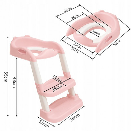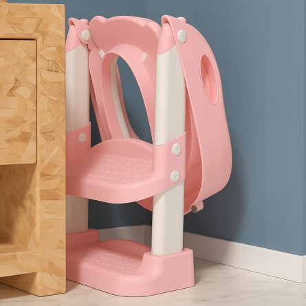 Bezpečné detské schodíky s redukciou na toaletu. Nastaviteľná výška, mäkké sedadlo, protišmykové nožičky a skladacia konštrukcia. Ideálne pre deti od 2 rokov.