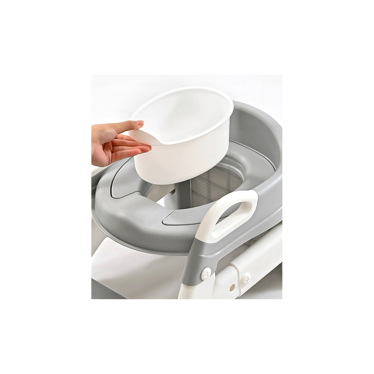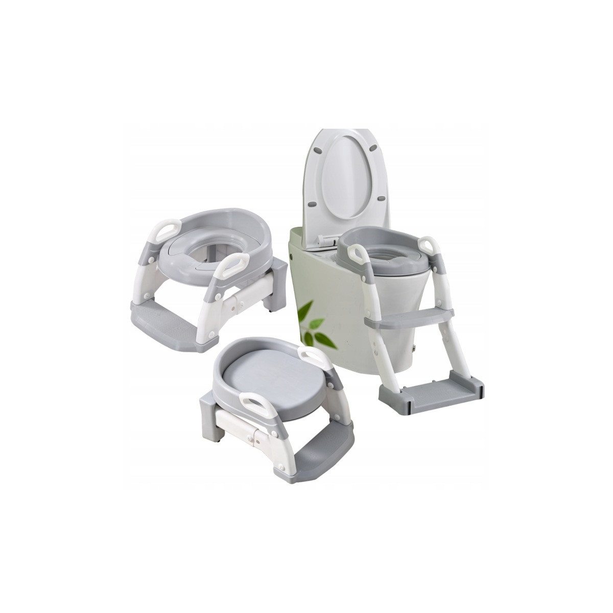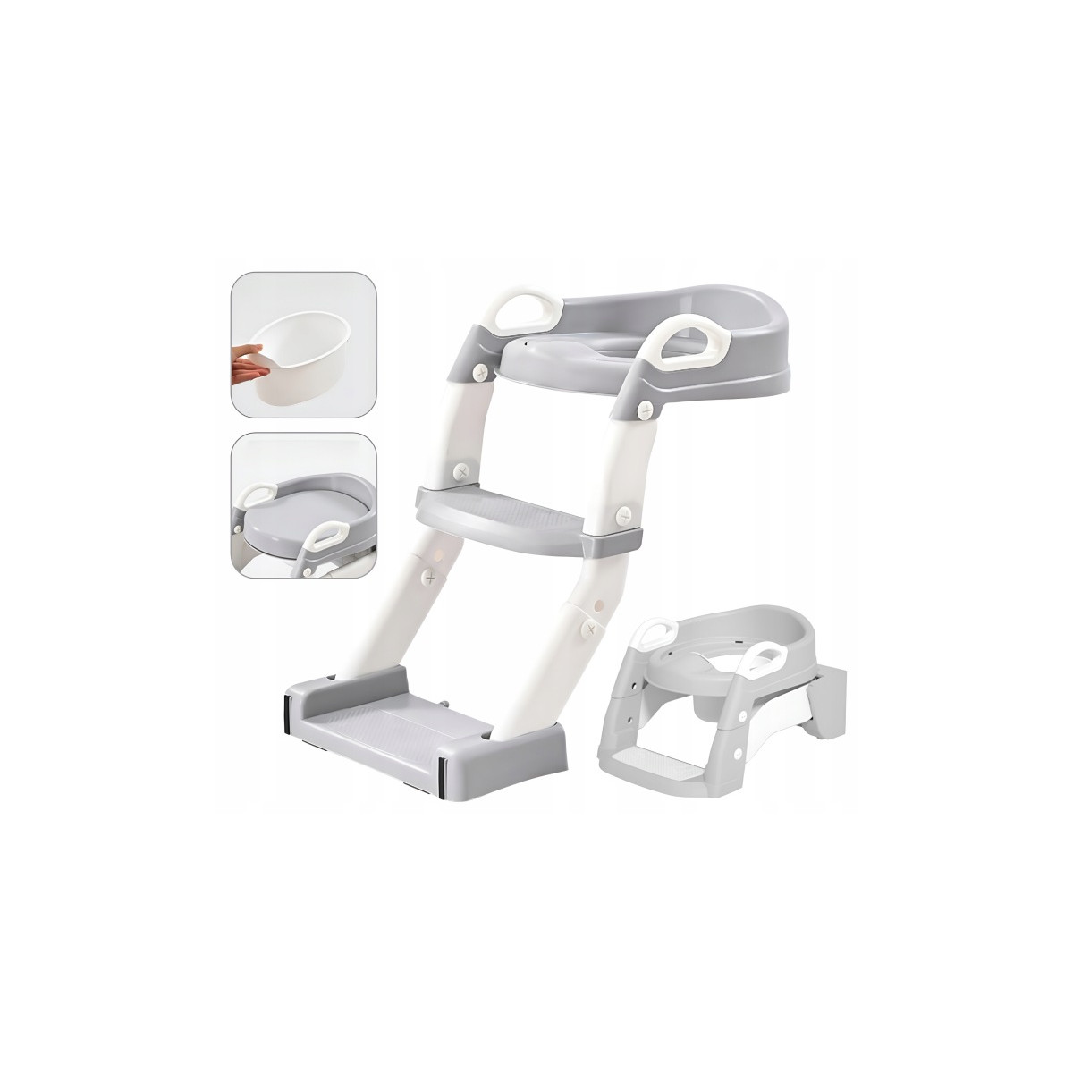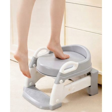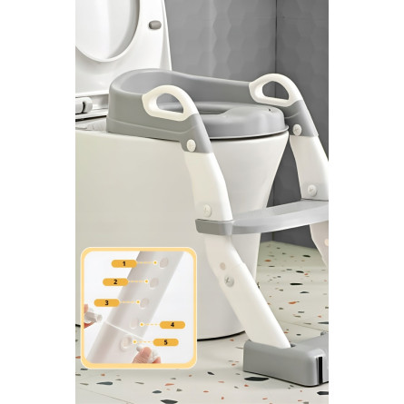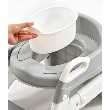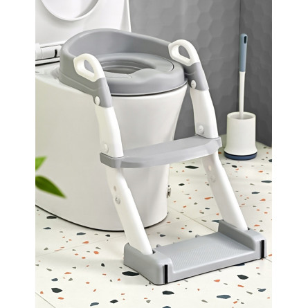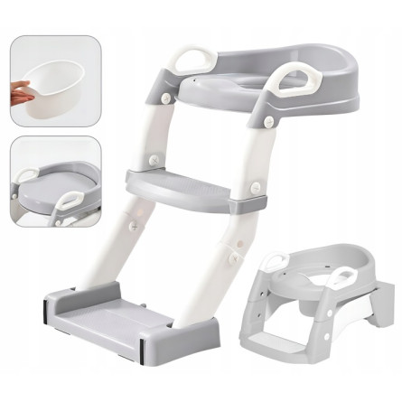 Praktická detská redukcia na toaletu 3v1 s rebríkom v sivej farbe. Slúži ako nočník, WC sedátko aj podstavec. Bezpečné a stabilné riešenie pre jednoduchý prechod dieťaťa na klasickú toaletu.