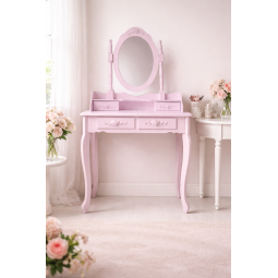 Ružový toaletný stolík so stoličkou