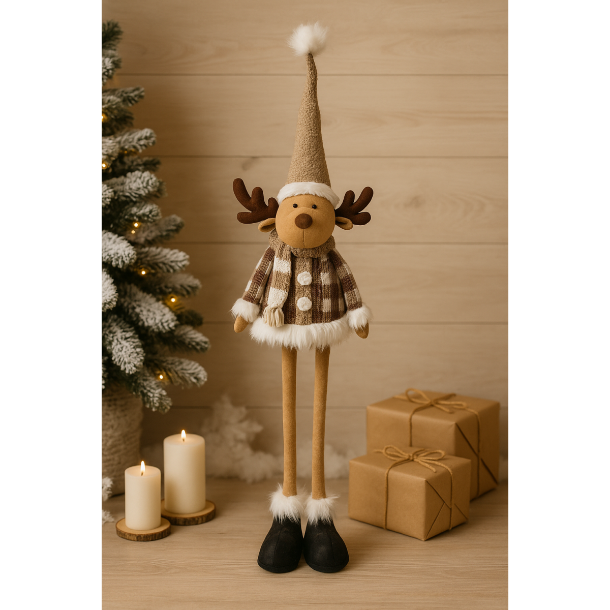 Vianočný sob s nastaviteľnými nohami 90 - 138 cm béžový