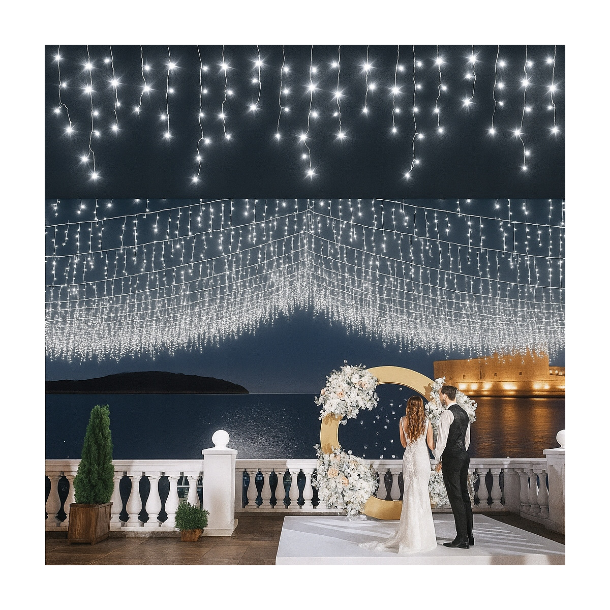 Vytvorte dokonalú zimnú atmosféru so svetelnými cencúľmi LED! Tieto elegantné svetelné záclony nádherne napodobňujú efekt stekajúceho ľadu a premenia fasádu, balkón či okno na rozprávkové zimné kráľovstvo.