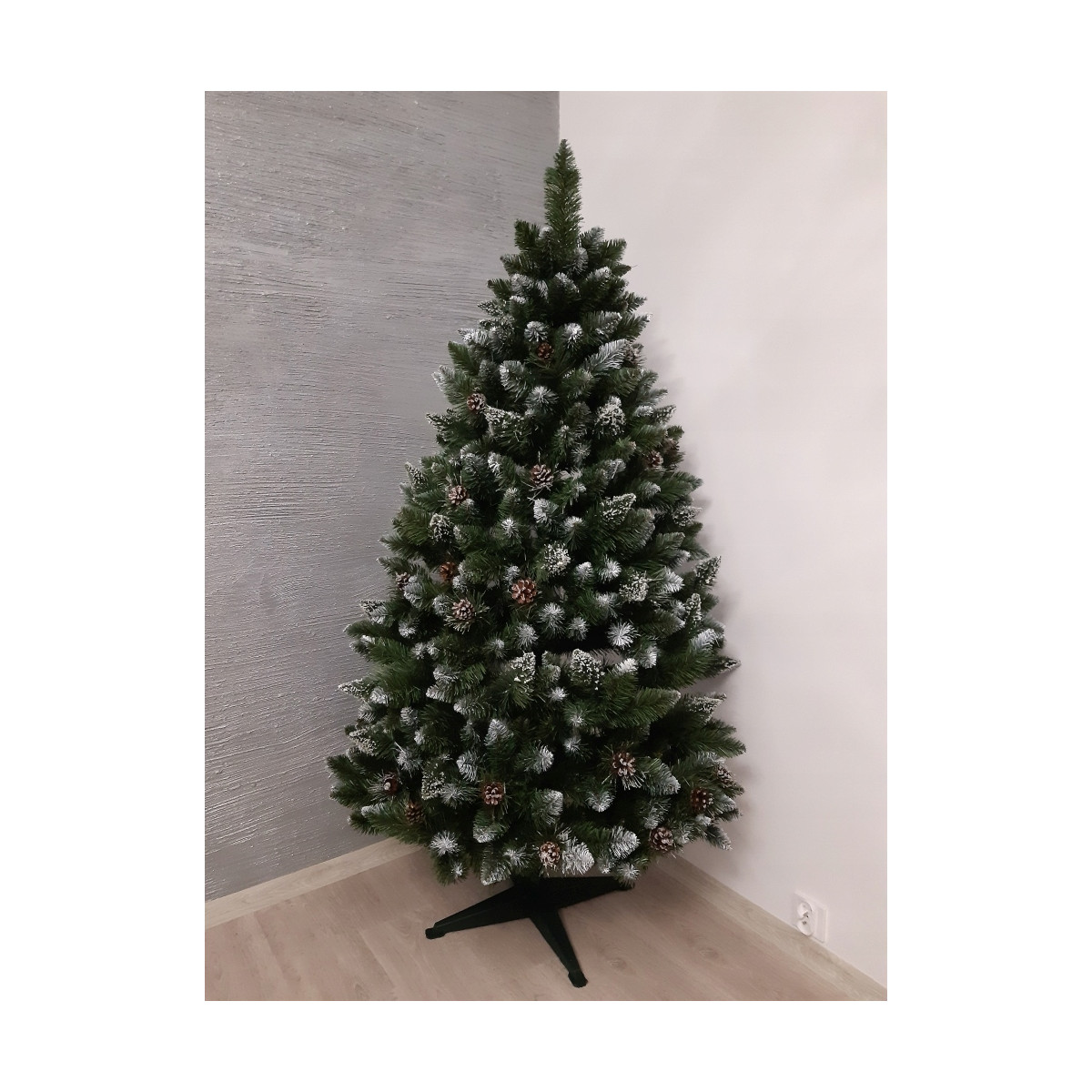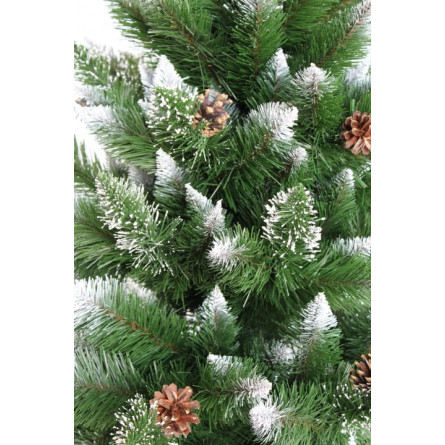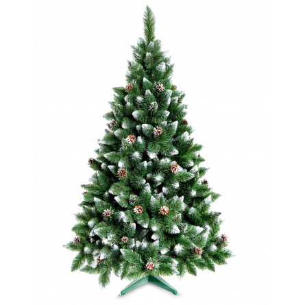 Elegantný vianočný stromček triedy PREMIUM, ktorý vyniká jedinečným „diamantovým“ efektom – vetvičky sú zdobené krištáľovými perličkami pripomínajúcimi sneh a ľad. Stromček má prirodzene husté, mäkké ihličie s borovicovým vzhľadom a je doplnený o ozdobné šišky s perleťovým povrchom.
