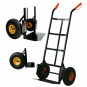 Skladový vozík, ktorý je možné vďaka svojmu špeciálnemu dizajnu použiť ako ručný vozík na zvislú prepravu nákladov. Odolný, funkčný a všestranný, má silnú oceľovú platformu, ktorá vydrží až 200 kg. Kovový kryt zlepšuje stabilitu prepravovaného tovaru. Tvarovaná rukoväť zaisťuje pohodlné uchopenie a spoľahlivú manipuláciu. Možnosť nastavenia výšky podľa výšky užívateľa - nastavenie rukoväte v dvoch úrovniach.