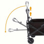Vozík je navyše vybavený ľahko dostupnými vreckami (napr. na vodu) a rukoväťou na prenášanie po zložení.