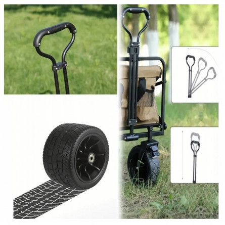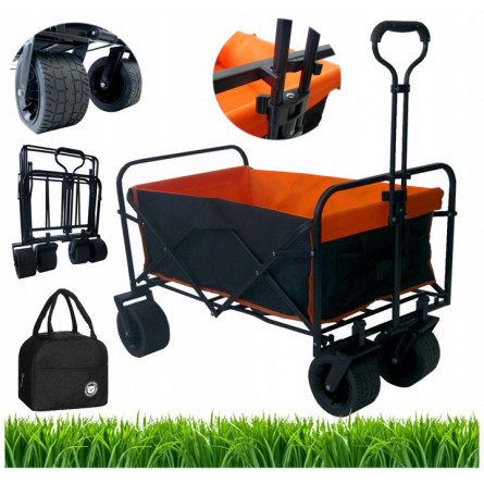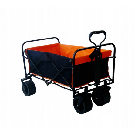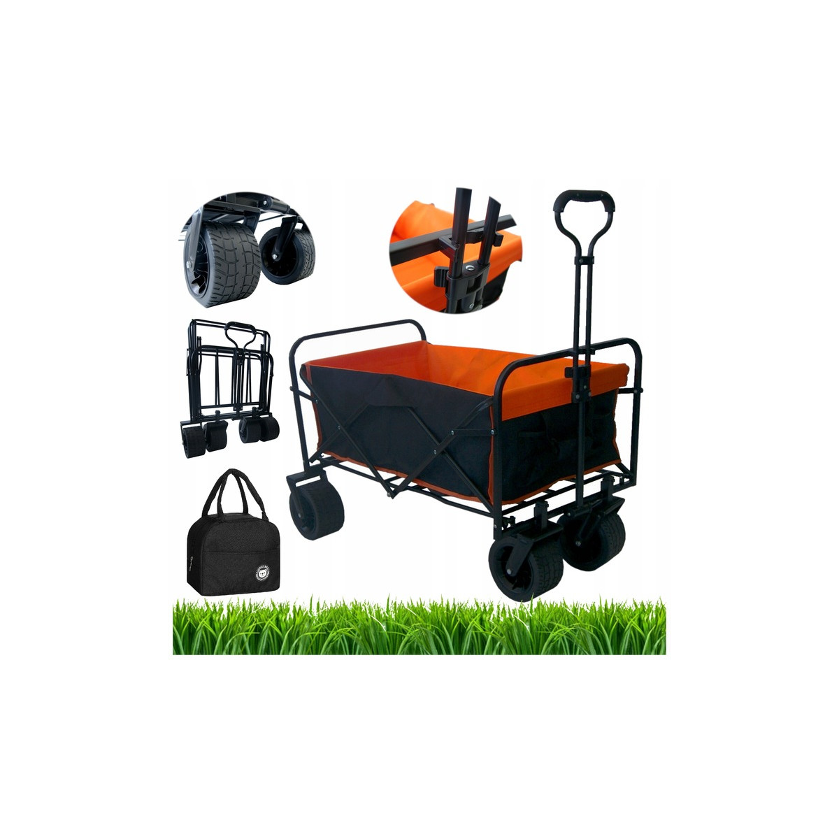 Univerzálny a odolný vozík je ideálny na prácu na záhrade alebo na chate, rovnako ako na dovolenku – na pláž, kemping či do lesa. Umožňuje jednoduchý prevoz rôzneho menšieho nákladu. Vyrobený z kovovej konštrukcie a vodoodolného materiálu. Široká a pohodlná rukoväť s protišmykovou úpravou zaručuje ľahký transport. Kolesá otočné o 360° zabezpečujú plynulú jazdu, ich šírka zaručuje komfort aj na piesku. Nastaviteľná výška rukoväte sa prispôsobí každému používateľovi.