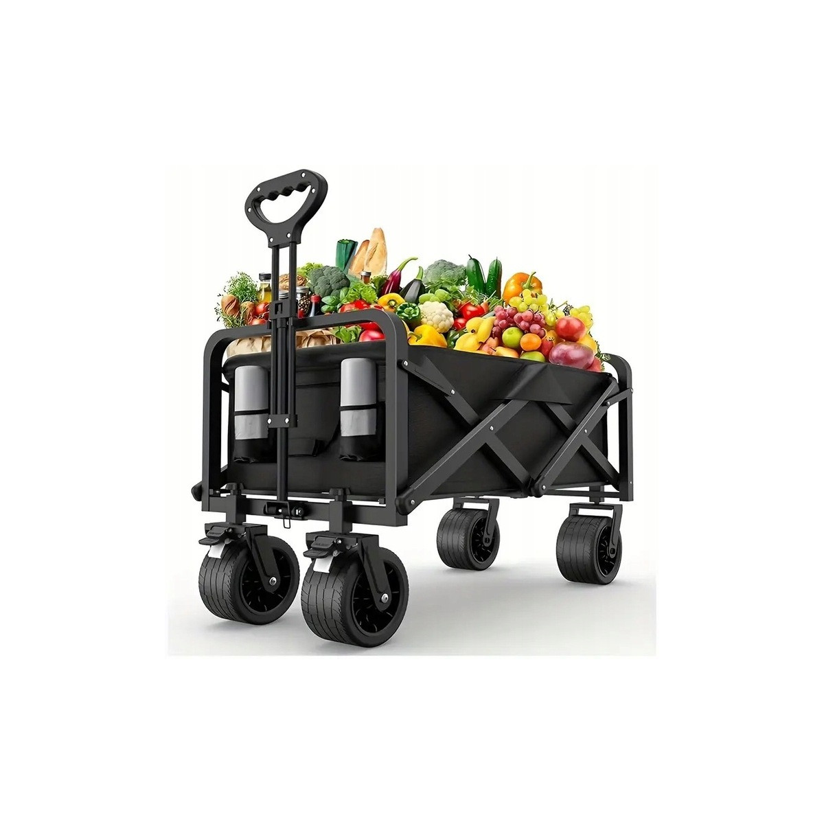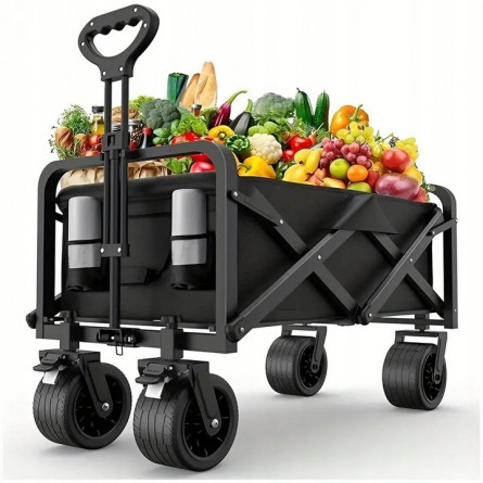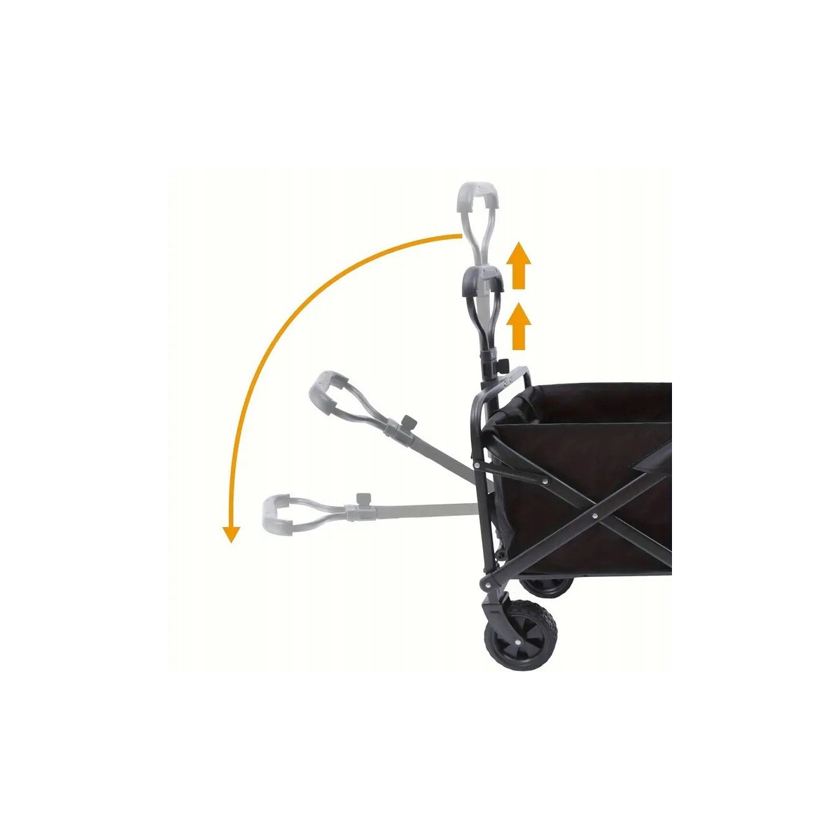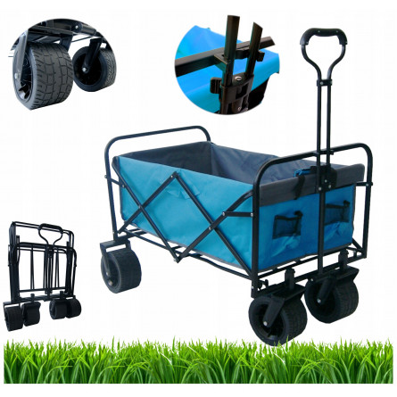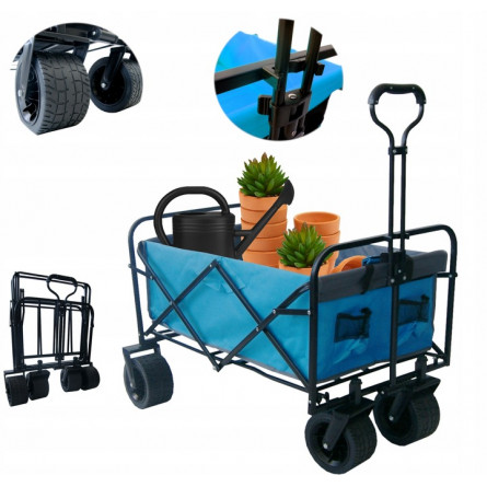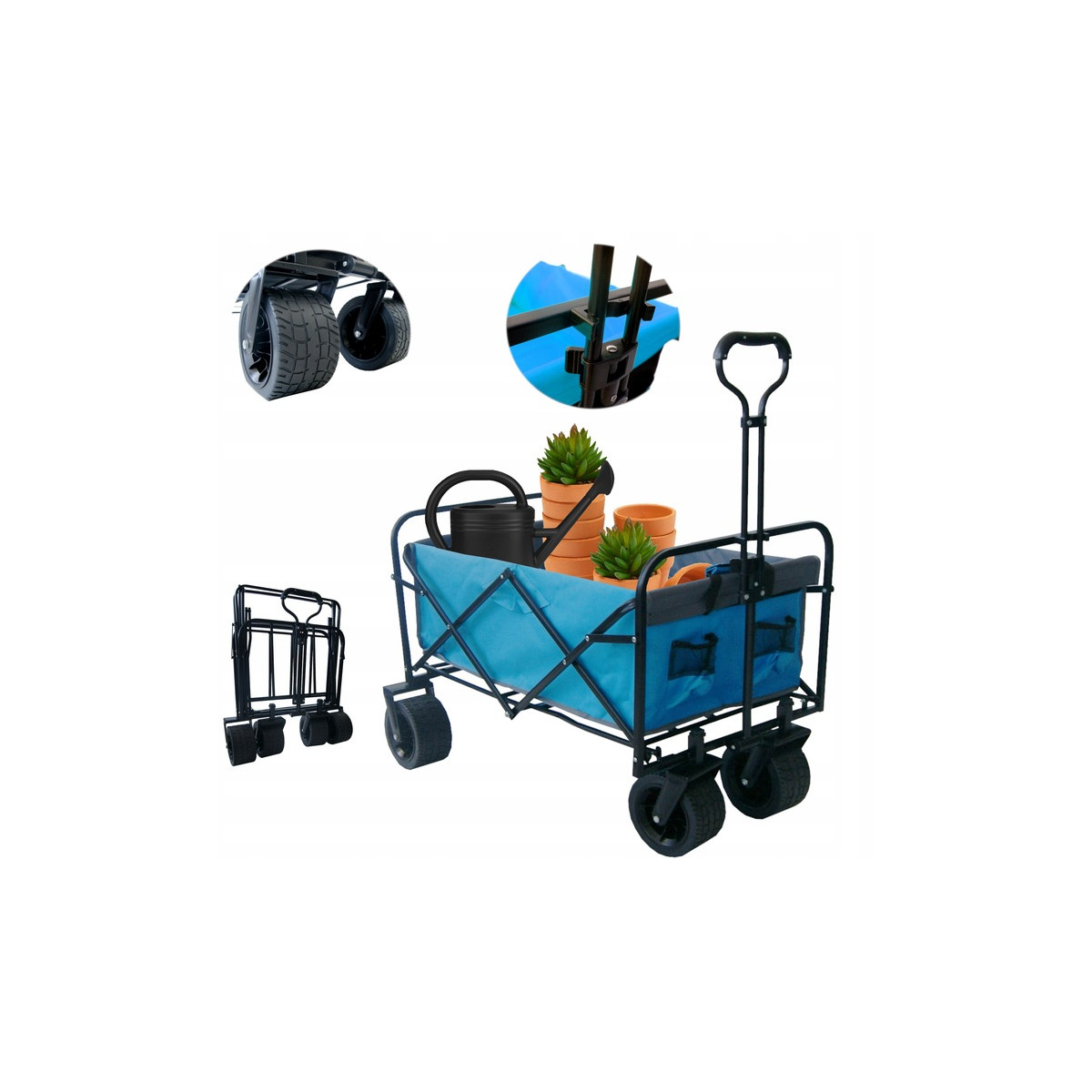 Univerzálny a odolný vozík je ideálny na prácu na záhrade alebo na chate, rovnako ako na dovolenku – na pláž, kemping či do lesa. Umožňuje jednoduchý prevoz rôzneho menšieho nákladu. Vyrobený z kovovej konštrukcie a vodoodolného materiálu. Široká a pohodlná rukoväť s protišmykovou úpravou zaručuje ľahký transport. Kolesá otočné o 360° zabezpečujú plynulú jazdu, ich šírka zaručuje komfort aj na piesku. Nastaviteľná výška rukoväte sa prispôsobí každému používateľovi.