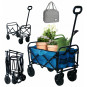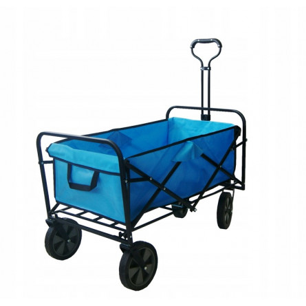 Multifunkčný a odolný vozík – skvele sa hodí na prácu na záhrade alebo pozemku. Vhodný aj na dovolenku – pláž, kemping, les. Využiteľný na prevoz nákupov, vybavenia a akéhokoľvek menšieho nákladu. Vozík je vyrobený z kovového rámu a vodoodolného materiálu. Maximálne rovnomerné zaťaženie: do 70 kg. Kolesá otočné o 360° zaručujú plynulý pohyb aj na piesku či nerovnom povrchu.