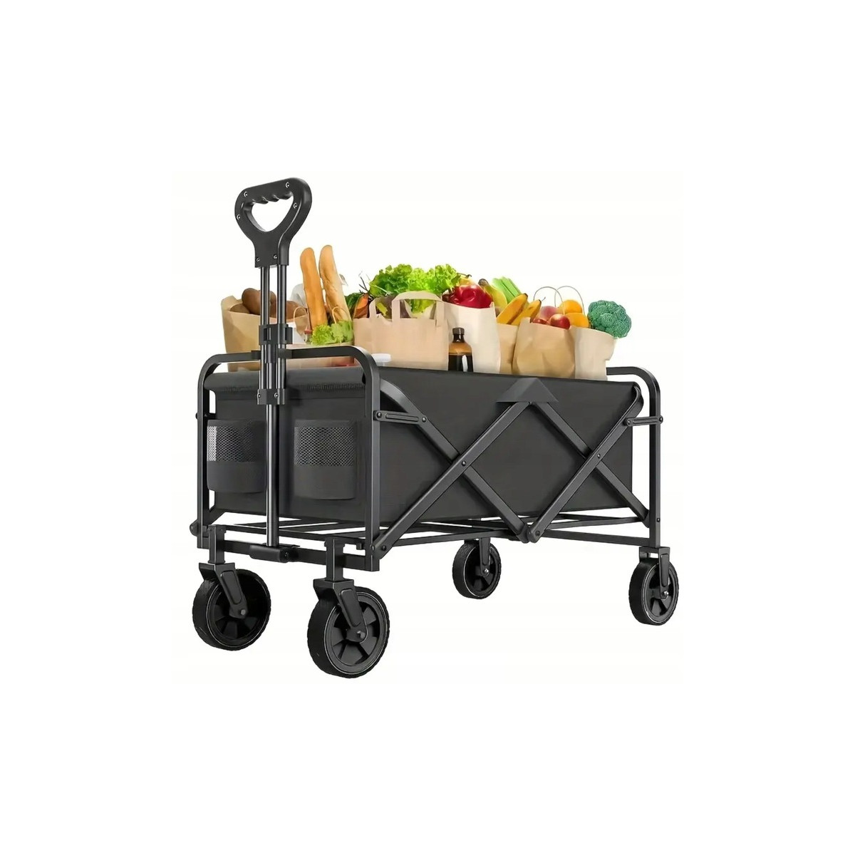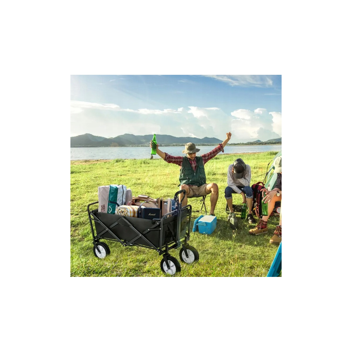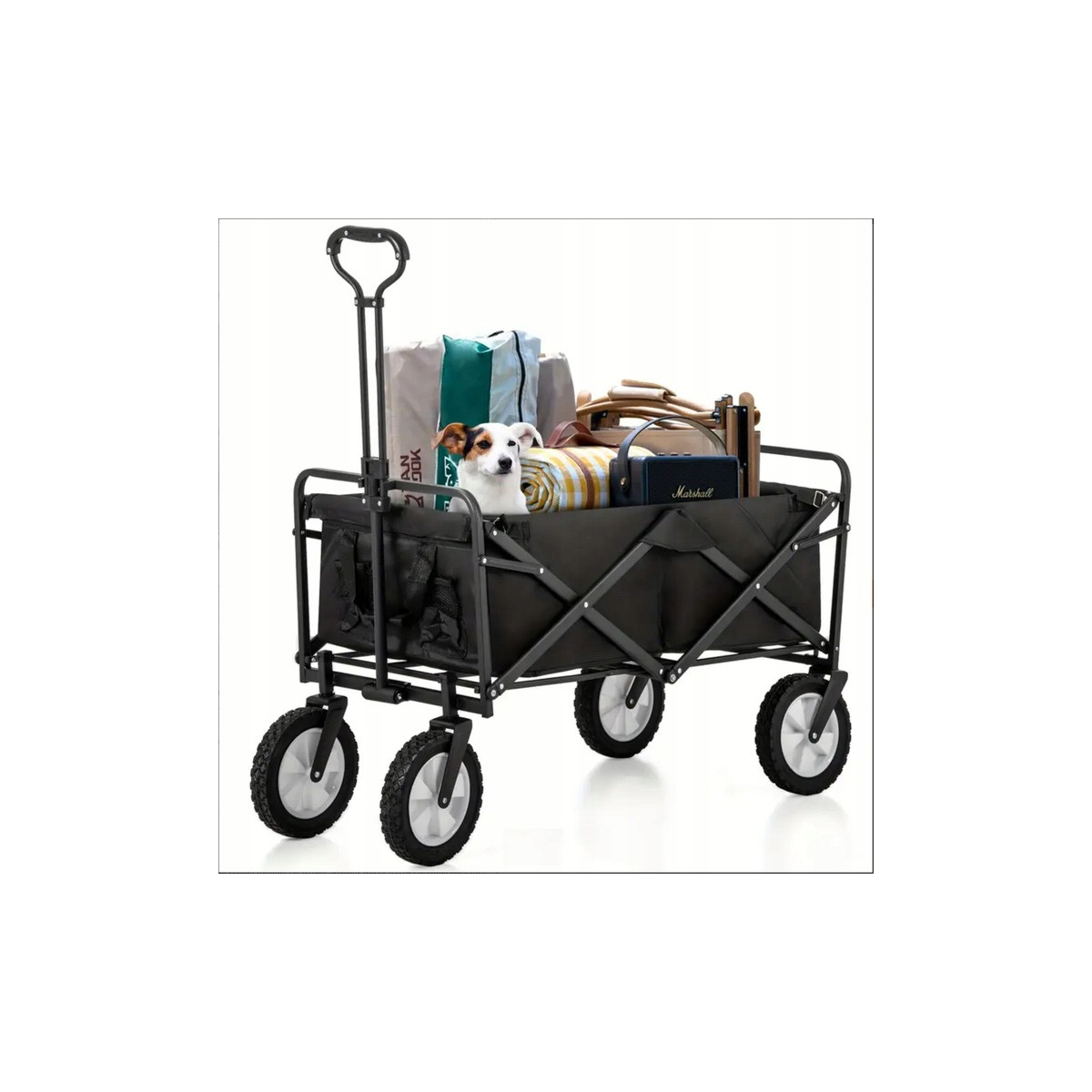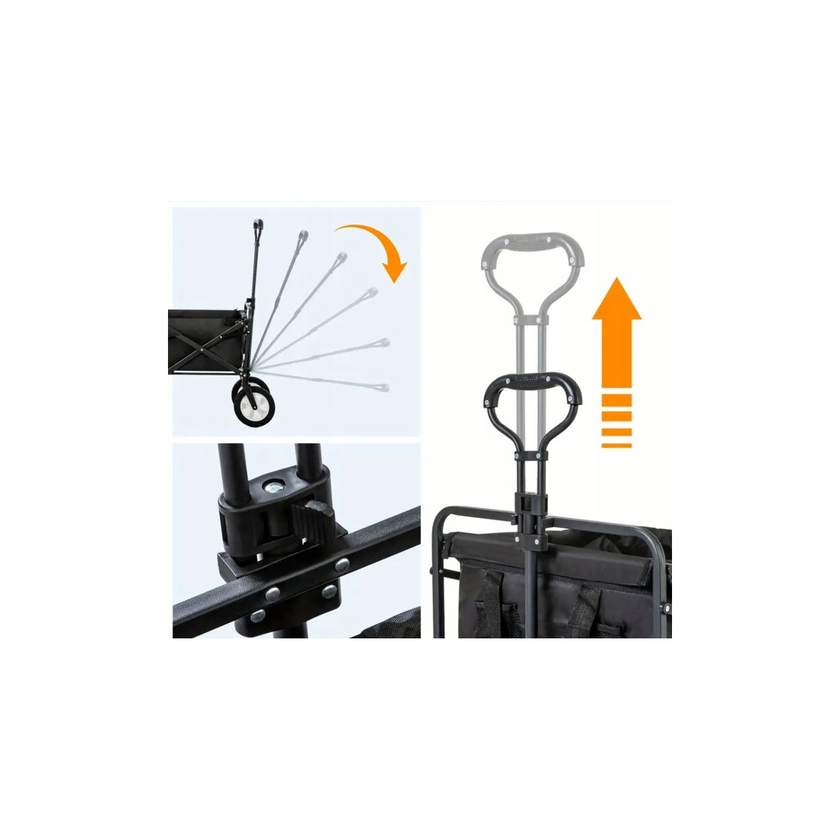 Multifunkčný a odolný vozík – skvele sa hodí na prácu na záhrade alebo pozemku. Vhodný aj na dovolenku – pláž, kemping, les. Využiteľný na prevoz nákupov, vybavenia a akéhokoľvek menšieho nákladu. Vozík je vyrobený z kovového rámu a vodoodolného materiálu. Maximálne rovnomerné zaťaženie: do 70 kg. Kolesá otočné o 360° zaručujú plynulý pohyb aj na piesku či nerovnom povrchu.
