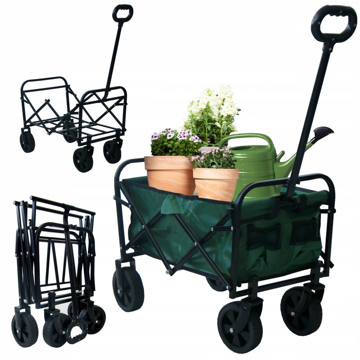 Univerzálny a odolný – ideálny na prácu v záhrade alebo na chate, skvelý aj na dovolenky – pláž, kempovanie či výlety do lesa. Umožňuje jednoduchý prevoz rôzneho menšieho nákladu. Vyrobený z kovovej konštrukcie a vodoodolného materiálu. Má širokú a pohodlnú rukoväť – vďaka protišmykovej úprave je manipulácia s vozíkom jednoduchá. Kolesá otočné o 360° zabezpečujú plynulý pohyb aj po pieskovom povrchu.