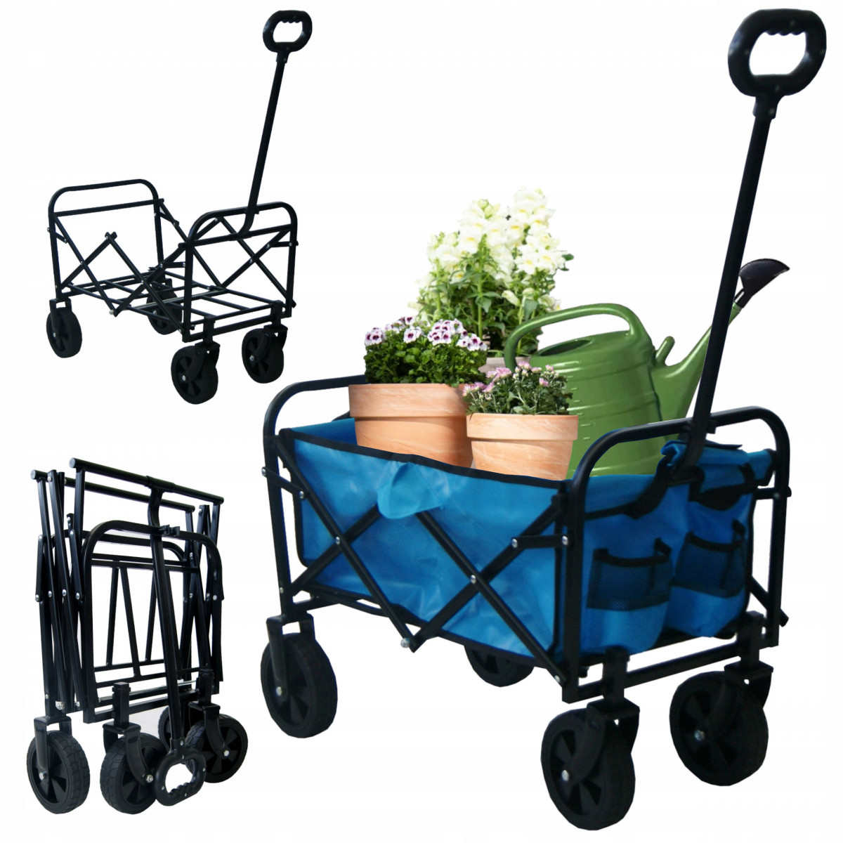 Univerzálny a odolný – ideálny na prácu v záhrade alebo na chate, skvelý aj na dovolenky – pláž, kempovanie či výlety do lesa. Umožňuje jednoduchý prevoz rôzneho menšieho nákladu. Vyrobený z kovovej konštrukcie a vodoodolného materiálu. Má širokú a pohodlnú rukoväť – vďaka protišmykovej úprave je manipulácia s vozíkom jednoduchá. Kolesá otočné o 360° zabezpečujú plynulý pohyb aj po pieskovom povrchu.